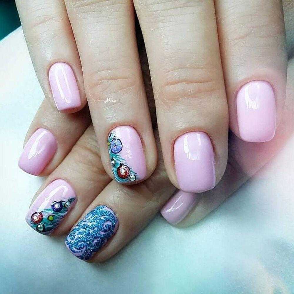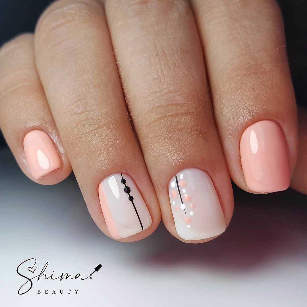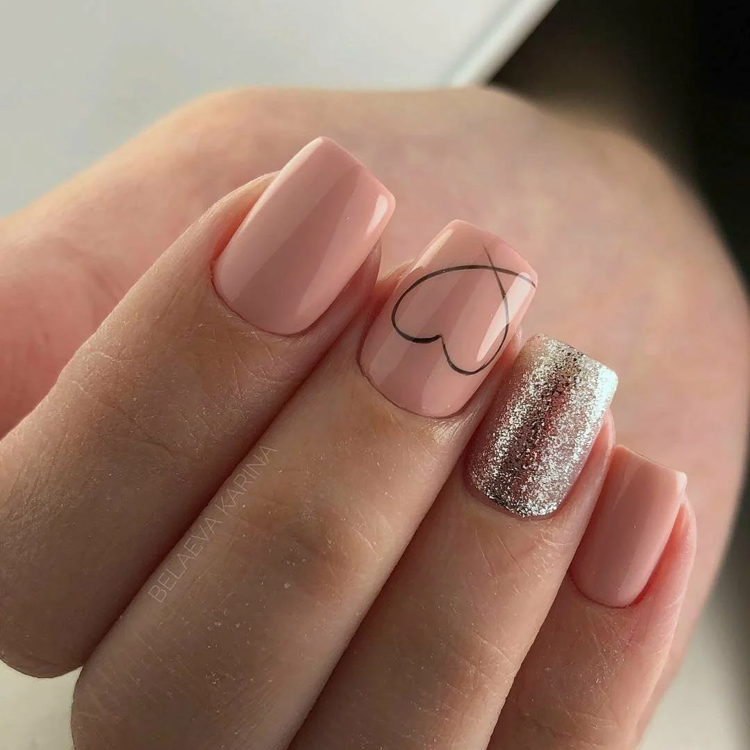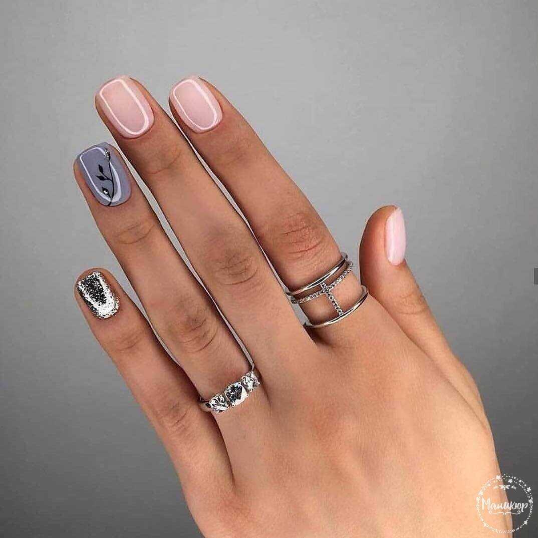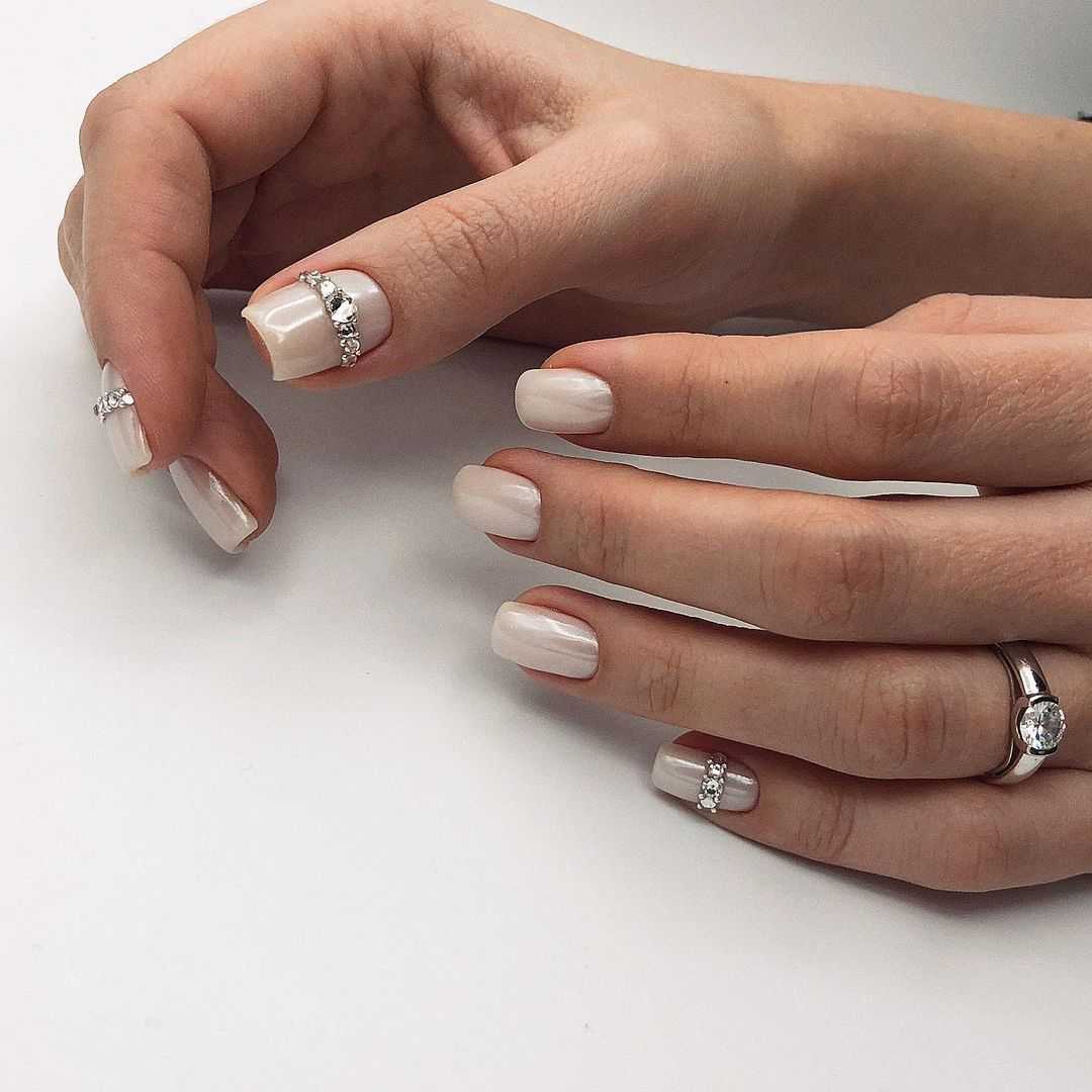 Дизайн на короткие ногти может включать в себя небольшие детали глиттера, мелкие стразы, которые добавят изящности и сделают маникюр более нежным и женственным.