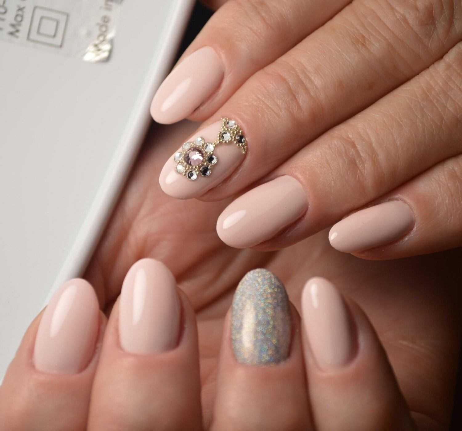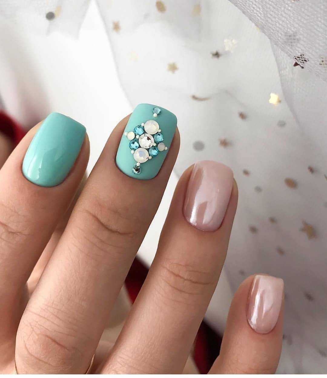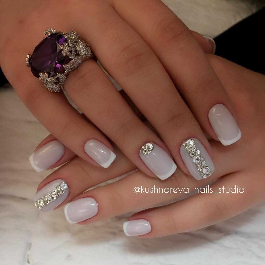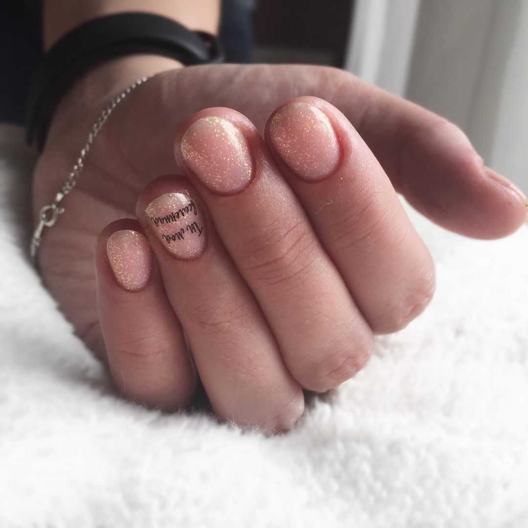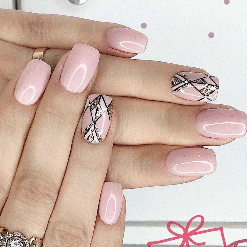 Дизайн на короткие ногти может включать в себя небольшие детали глиттера, мелкие стразы, которые добавят изящности и сделают маникюр более нежным и женственным.