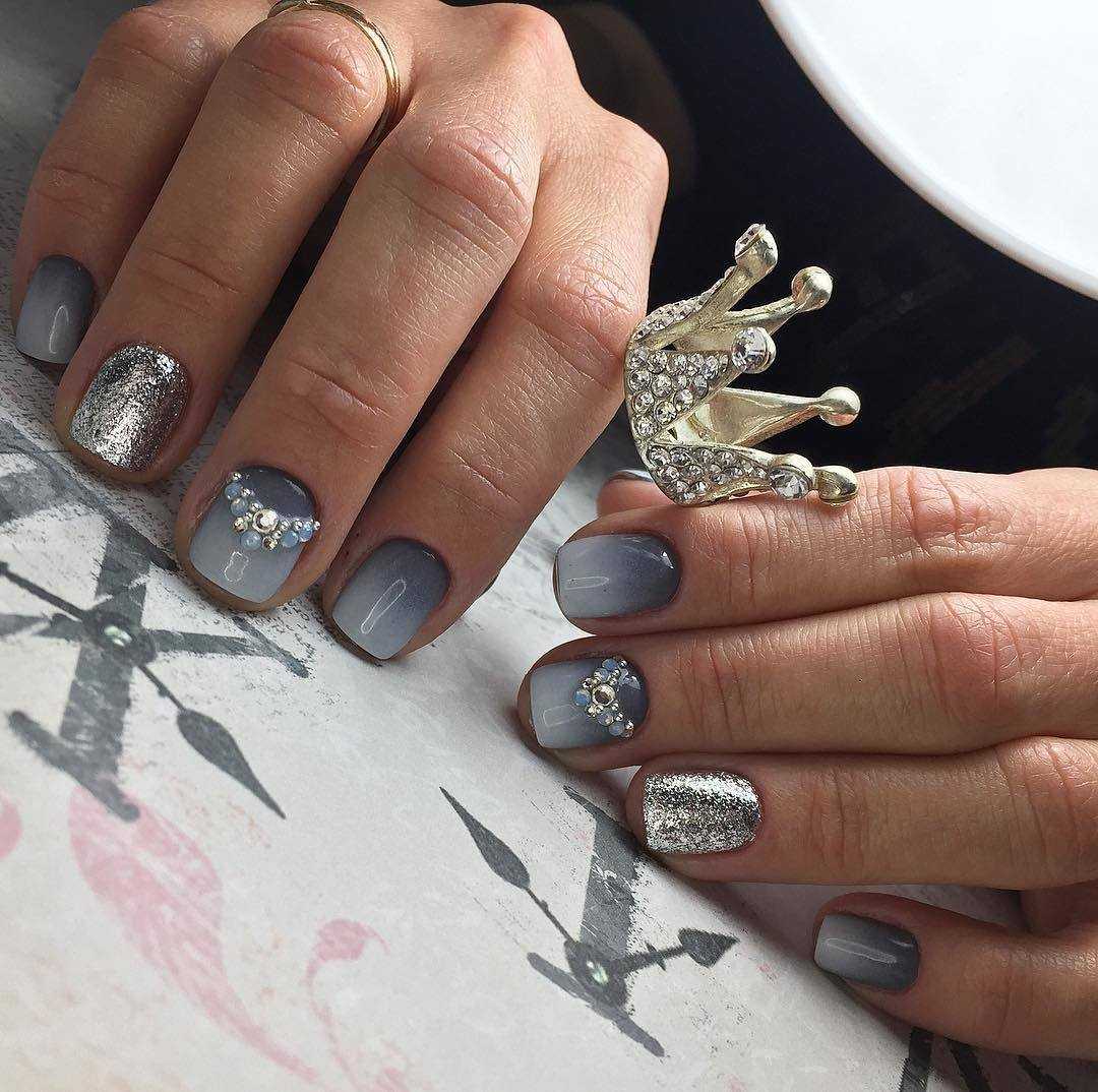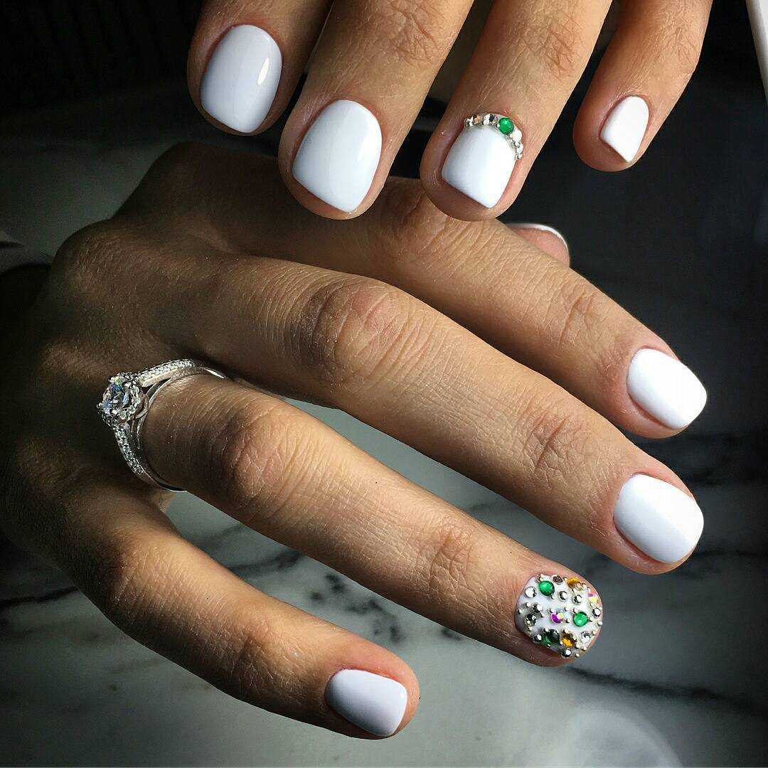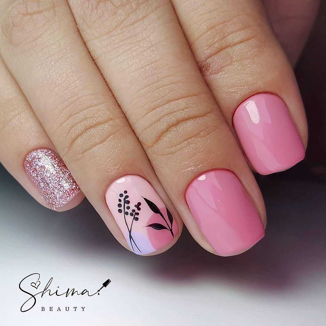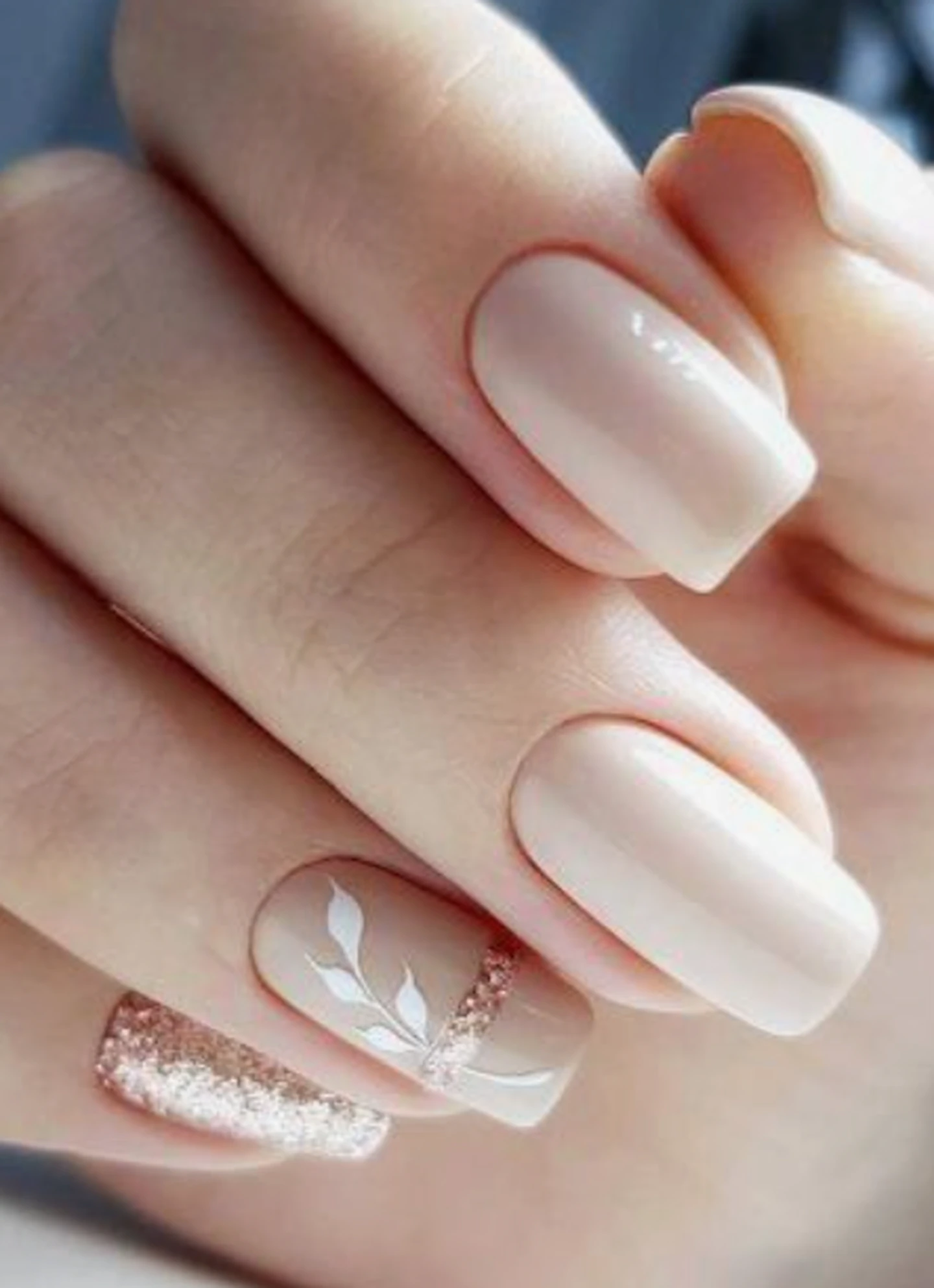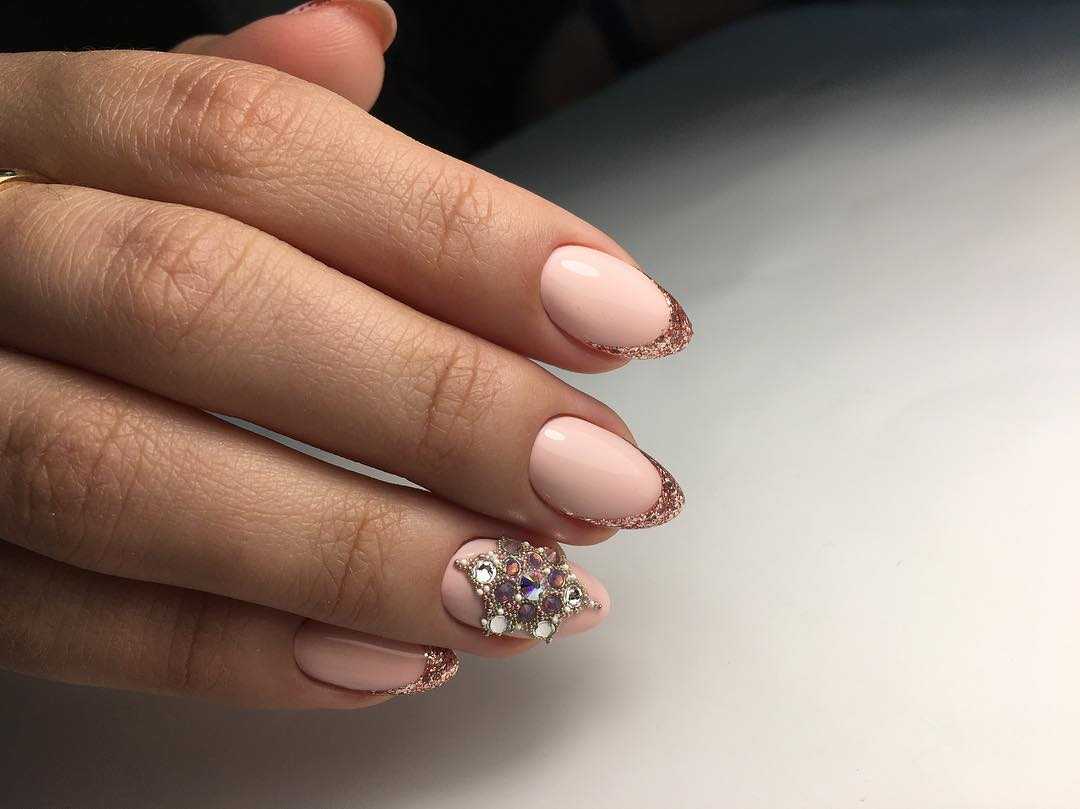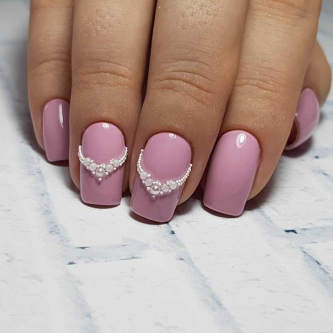 Дизайн на короткие ногти может включать в себя небольшие детали глиттера, мелкие стразы, которые добавят изящности и сделают маникюр более нежным и женственным.