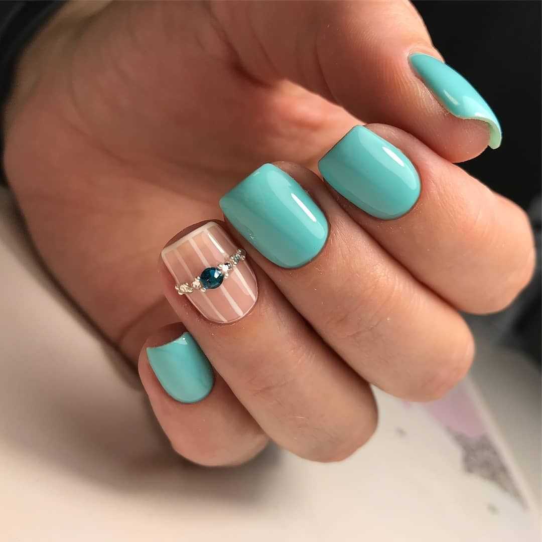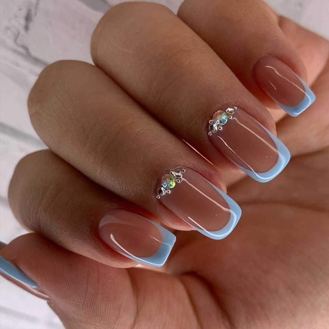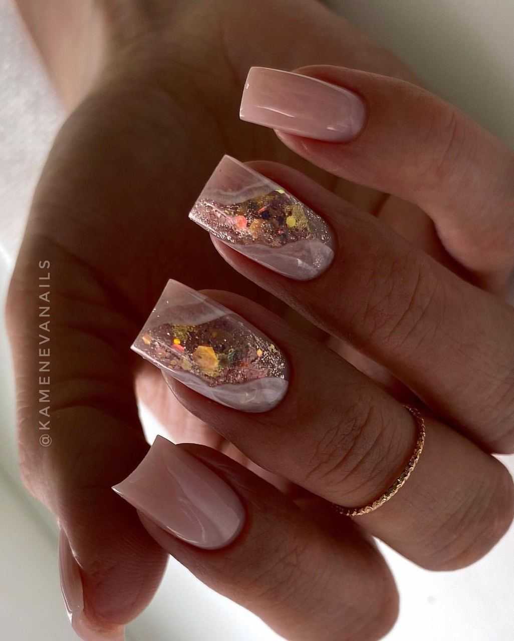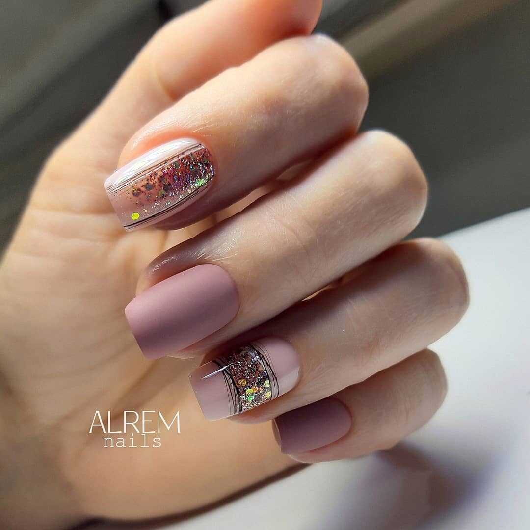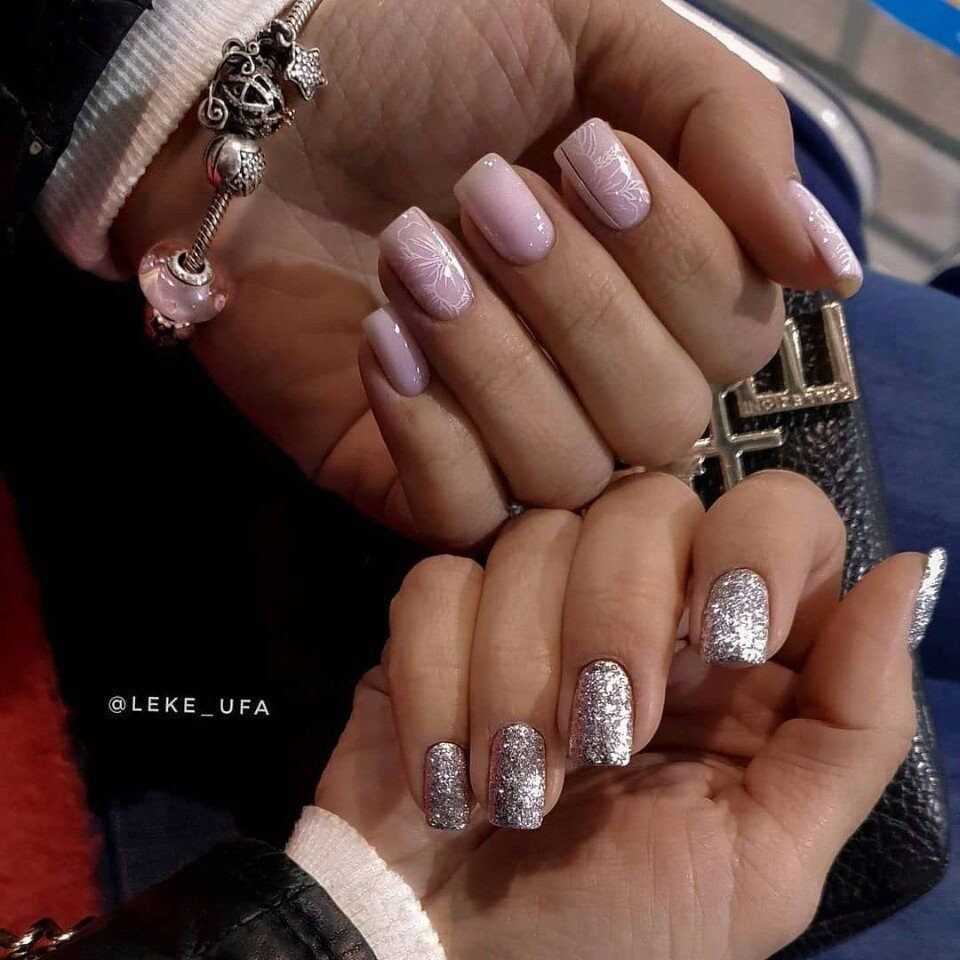 Дизайн на короткие ногти может включать в себя небольшие детали глиттера, мелкие стразы, которые добавят изящности и сделают маникюр более нежным и женственным.