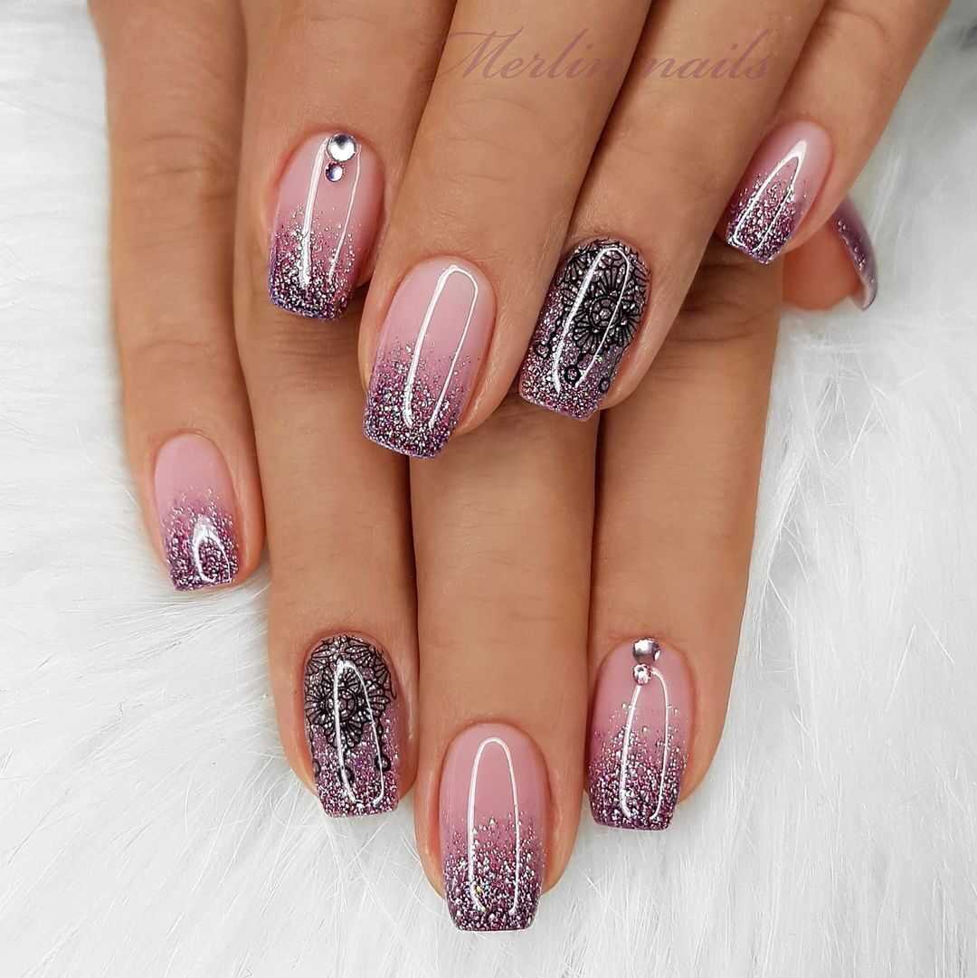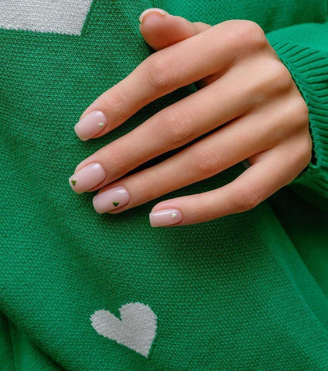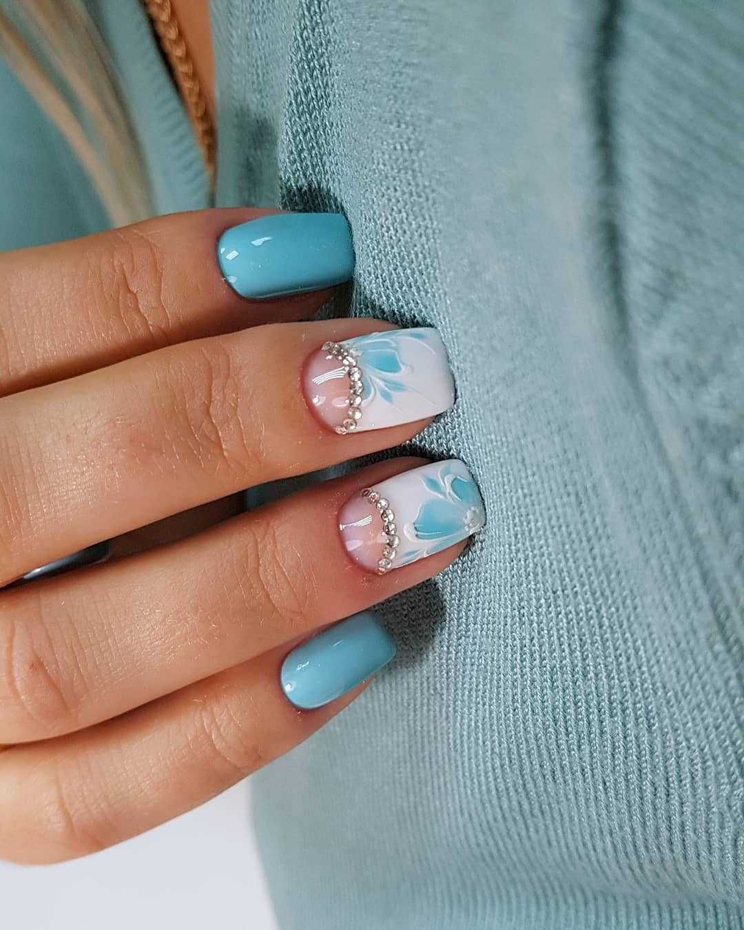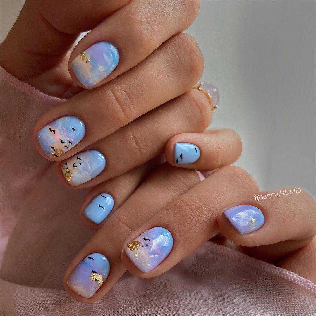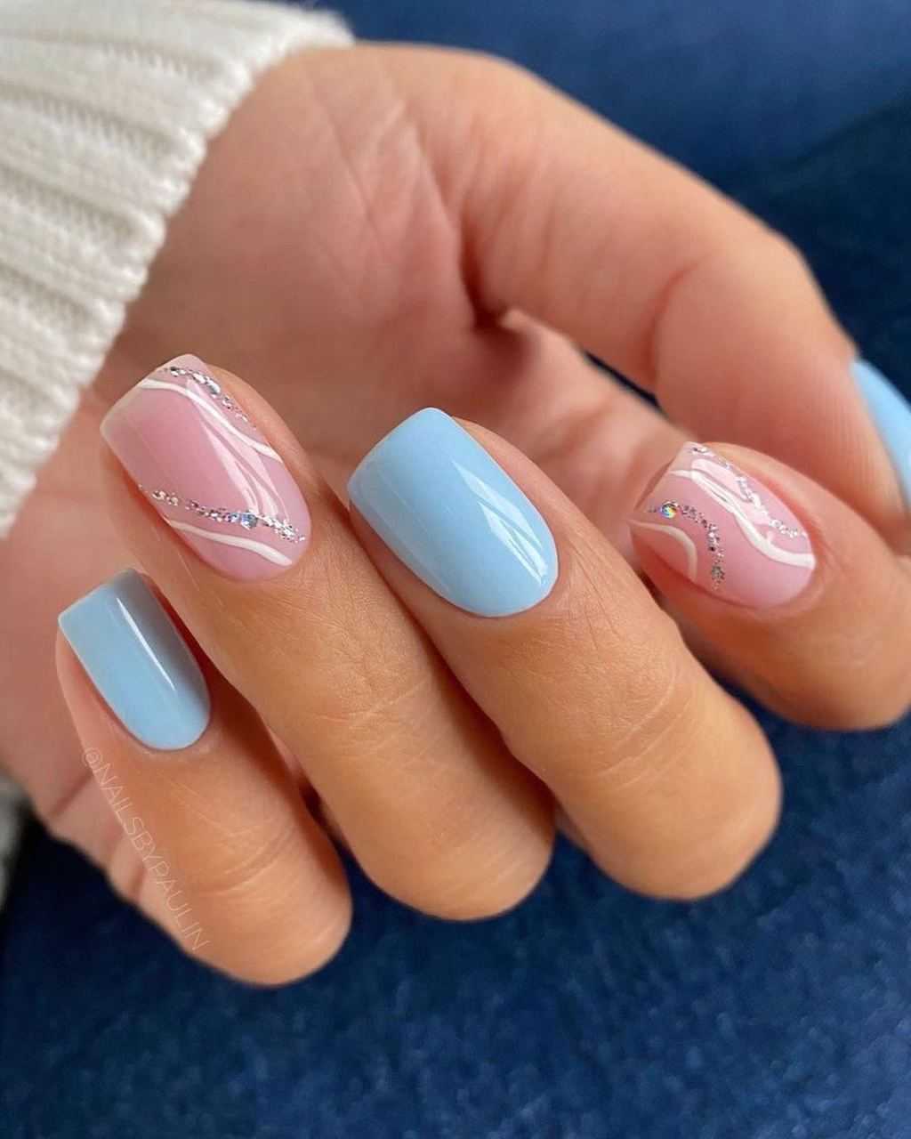 Дизайн на короткие ногти может включать в себя небольшие детали глиттера, мелкие стразы, которые добавят изящности и сделают маникюр более нежным и женственным.