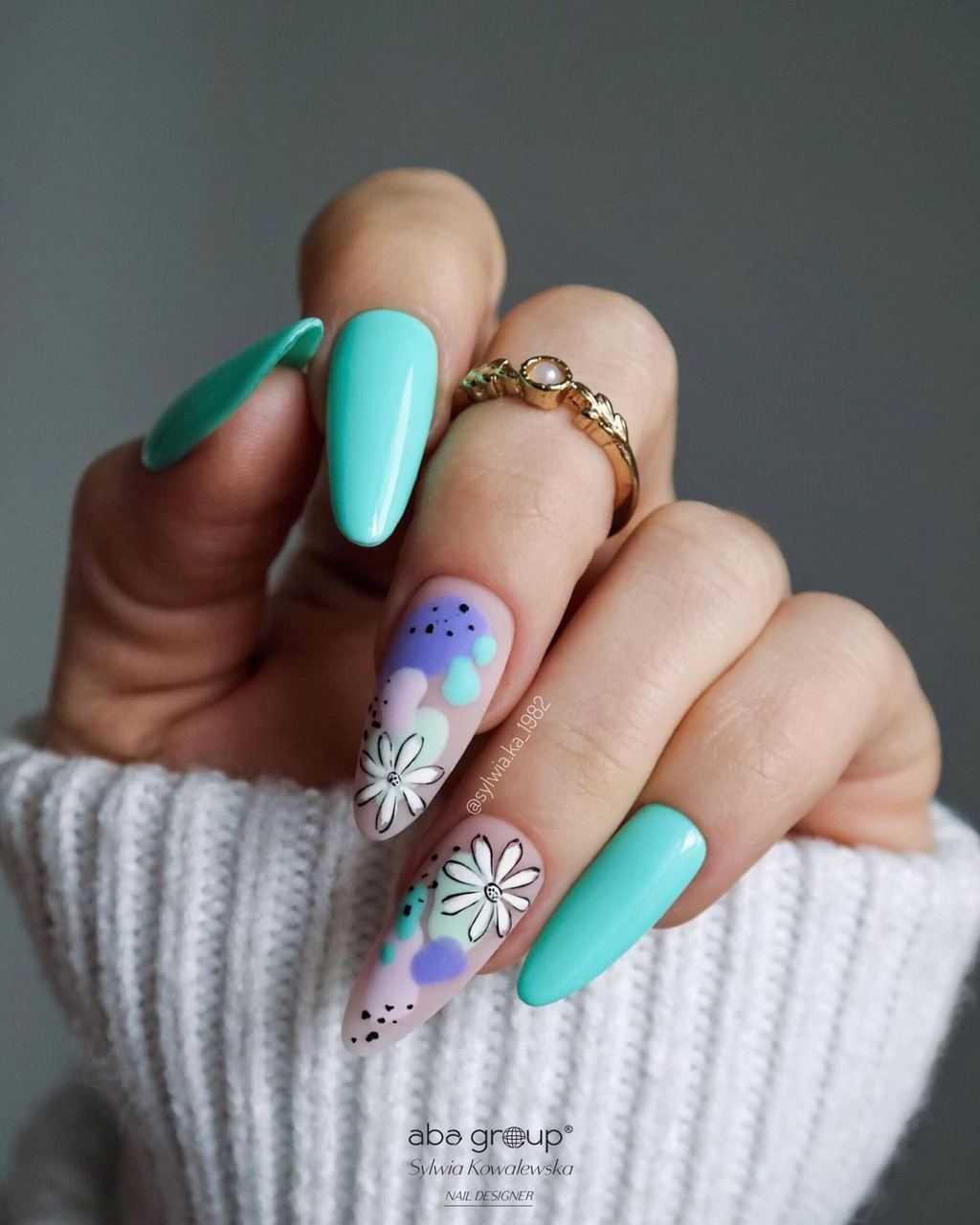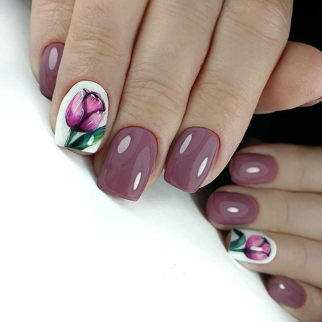 Категория цветочных трендов нежная, минималистичная, едва заметная, но при этом красочная и яркая. Ключевое слово: акцент. Придайте отдельным ногтям особый вид с помощью ромашки, тюльпана или розочки.