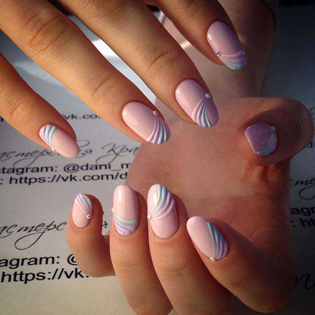 Нежный, простой, сдержанный маникюр – всегда актуальная идея, которая поможет подобрать образ абсолютно к любому событию и мероприятию. Аккуратные небольшие рисунки, едва заметные, тонкие линии, полупрозрачные или нюдовые тона лаков, и, конечно, при этом минимальное количество декор-элементов.