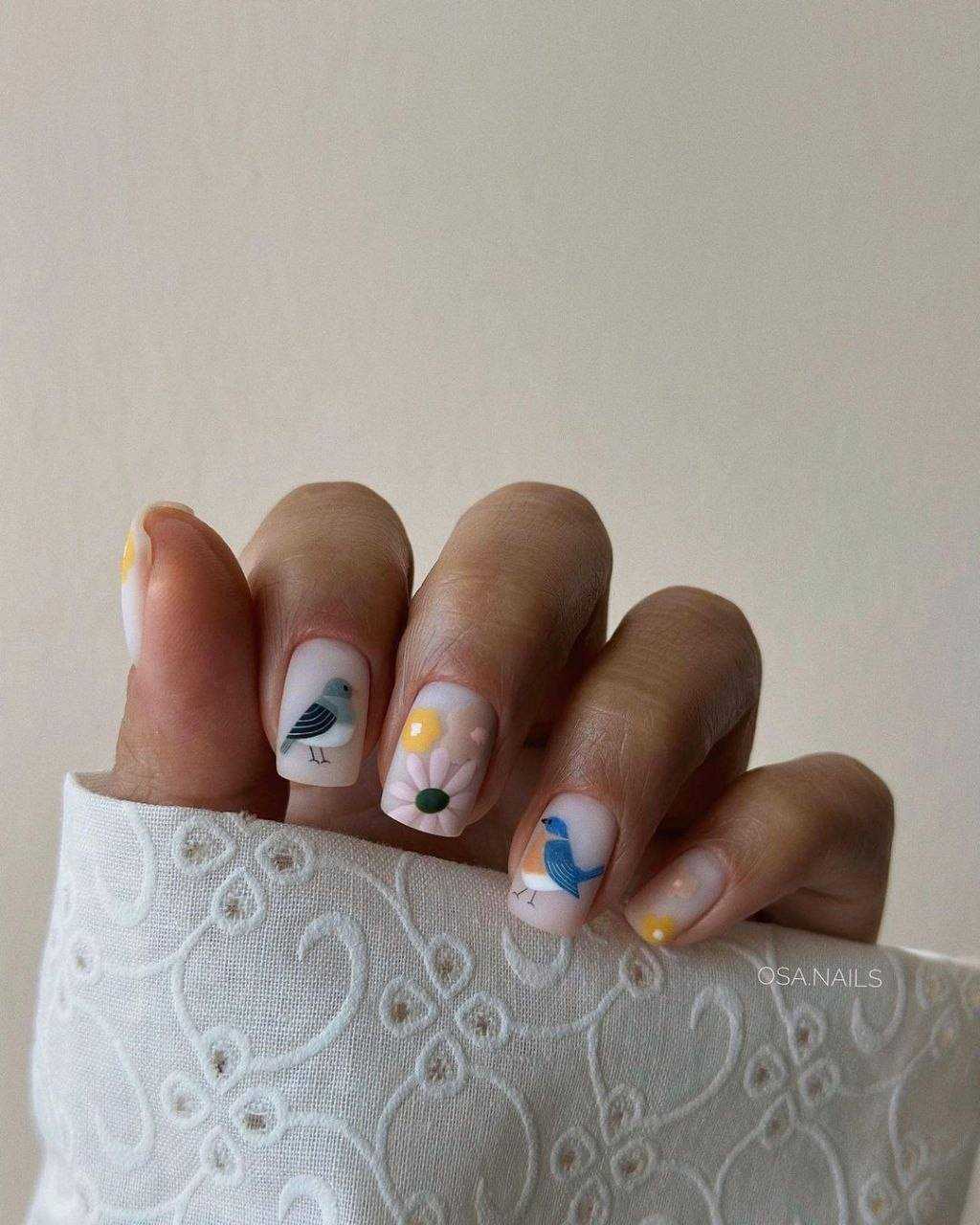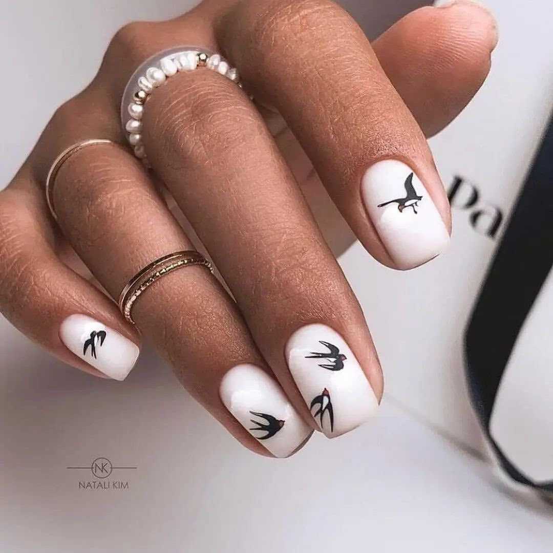 Перенести пернатых друзей на свои ноготки — отличная идея для маникюра на весенний сезон. Вариантов виртуозного дизайна с птичками множество. Вы можете выбрать сов и создать смешной маникюр. Можно нанести райских птичек и создать нежный дизайн. А можно наклеить ласточек и получить элегантный вариант маникюра.