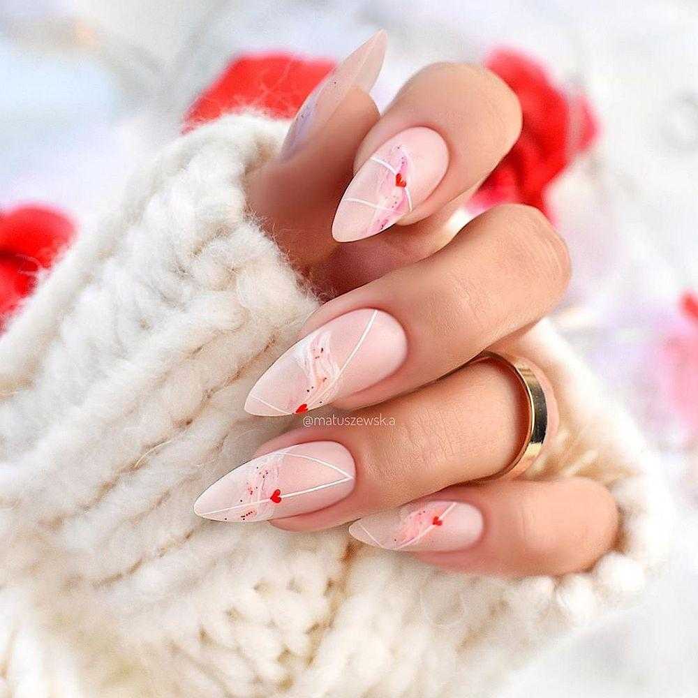 Матовый нежный маникюр будет прекрасен в лунном дизайне и омбре, со стразами и лаконичными узорами, геометрией и минимализмом. Особенно прекрасен матовый нежный nail art на миндалевидных ноготочках, благодаря «мягкости» форм и плавности линии, что будет выглядеть неимоверно изящно.