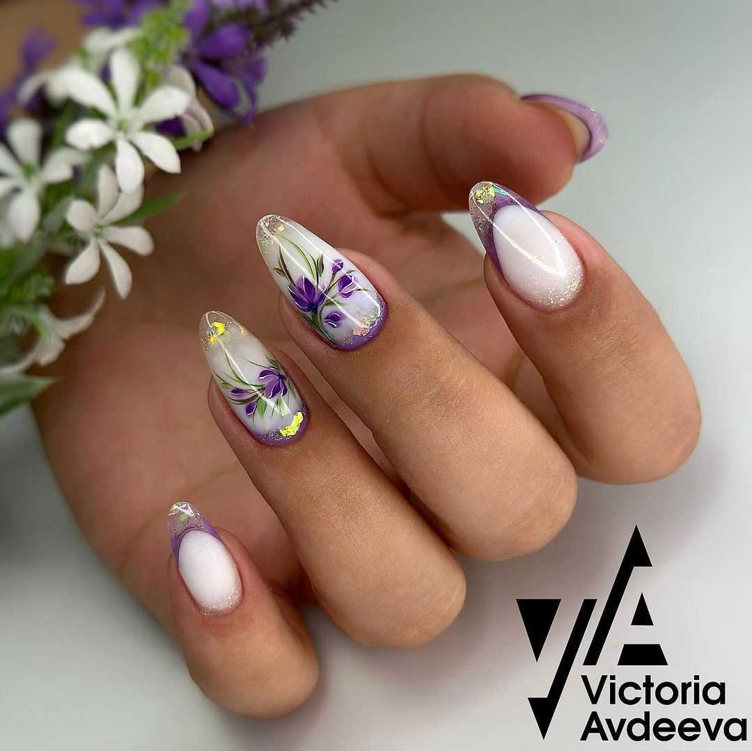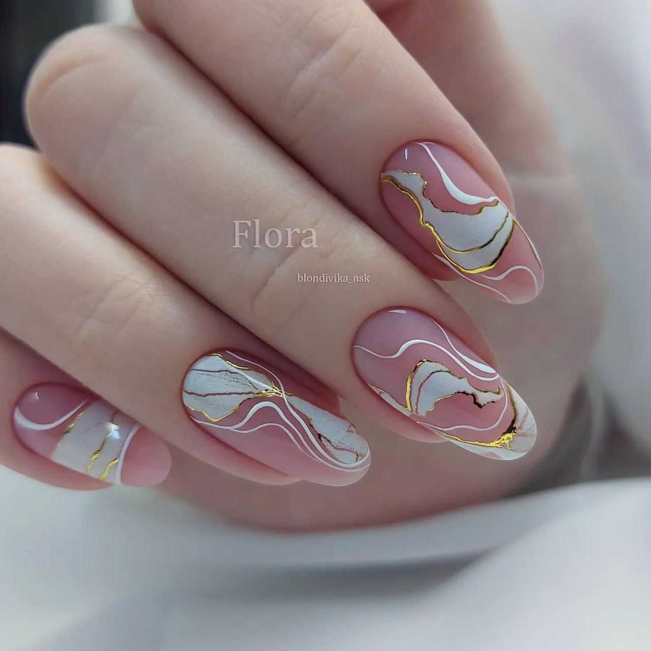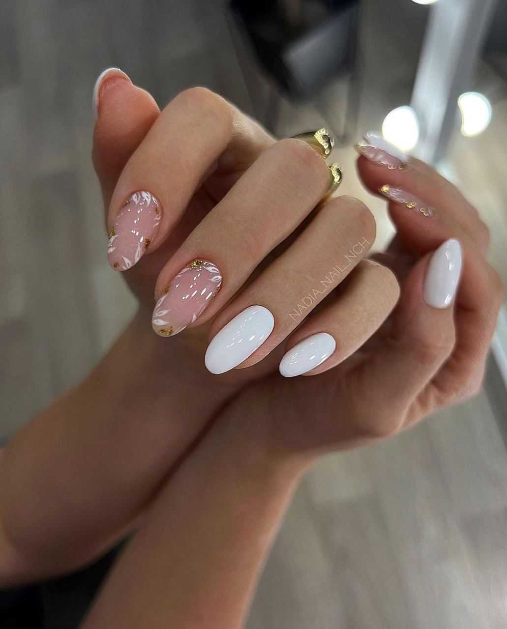 Используйте тонкие кисти и нежные оттенки, чтобы нарисовать цветочные узоры на ногтях. Можно использовать розы, пионы, или другие цветы, чтобы создать романтический и нежный маникюр, идеально подходящий для свадебного образа.