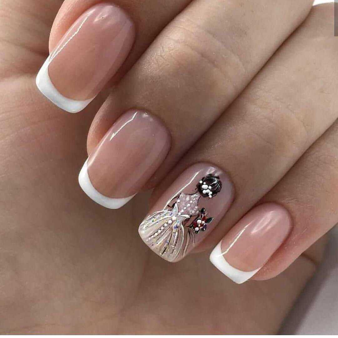 Вы также можете добавить нежный акцентный элемент к классическому французскому маникюру, чтобы сделать его более оригинальным. Например, вы можете нарисовать тонкий белый цвет на кончиках ногтей и добавить акцентный нежный узор, такой как цветочек, сердечко или звездочку.