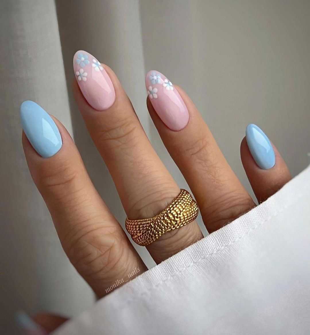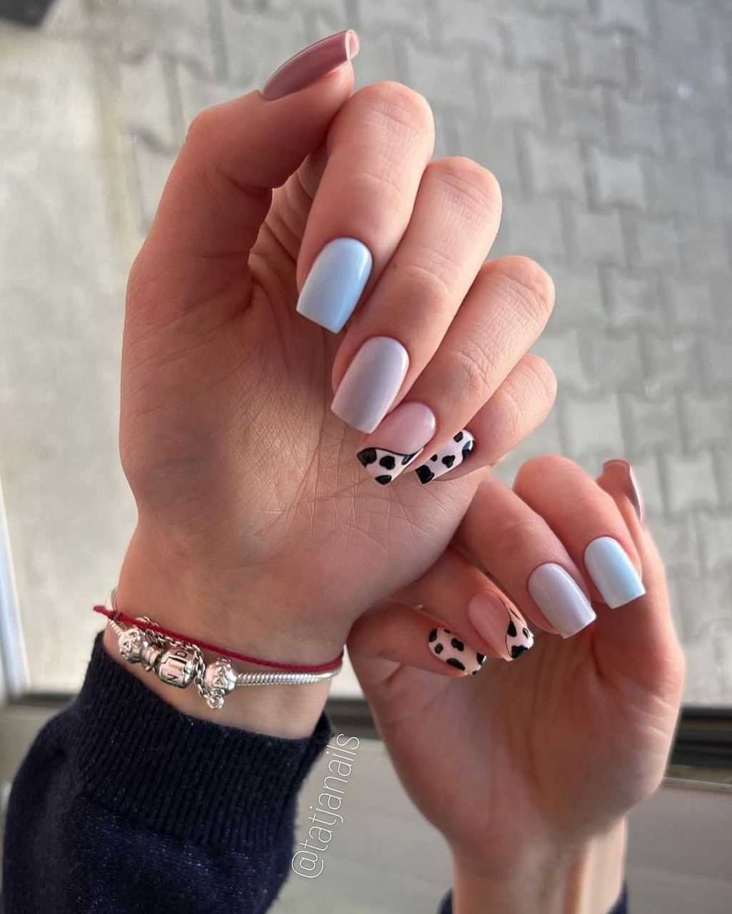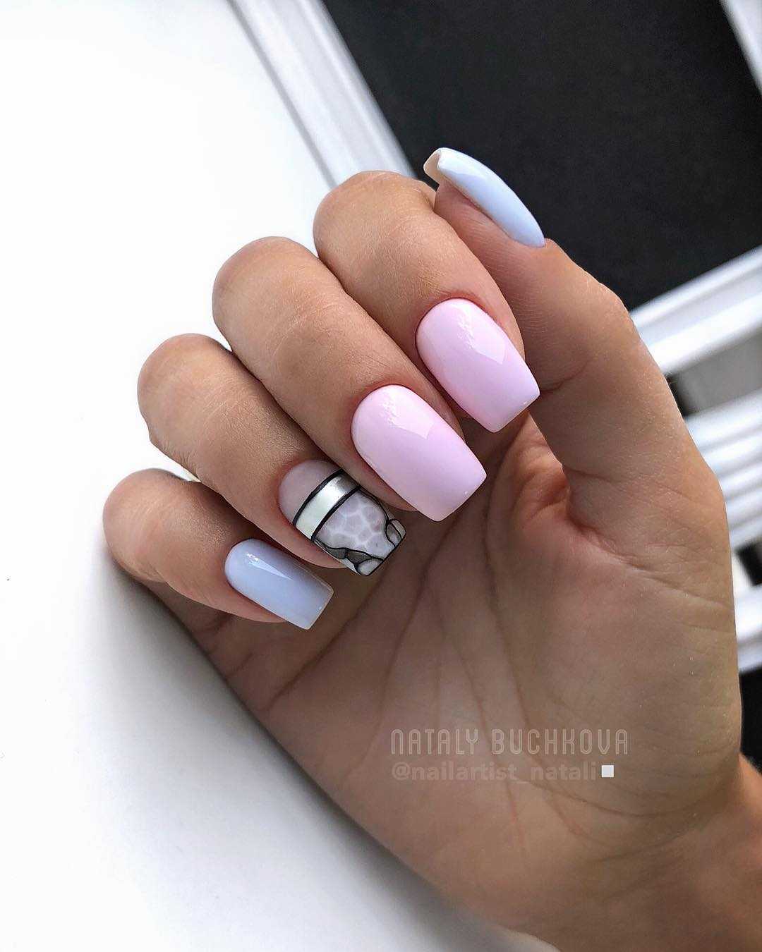 Используйте нежные пастельные оттенки, такие как светло-розовый, персиковый, мятный или бледно-голубой, чтобы создать нежный маникюр. Добавьте акцентный элемент, такой как деликатный цветочный узор, бантик, или сверкающие стразы, чтобы придать маникюру особый шарм.