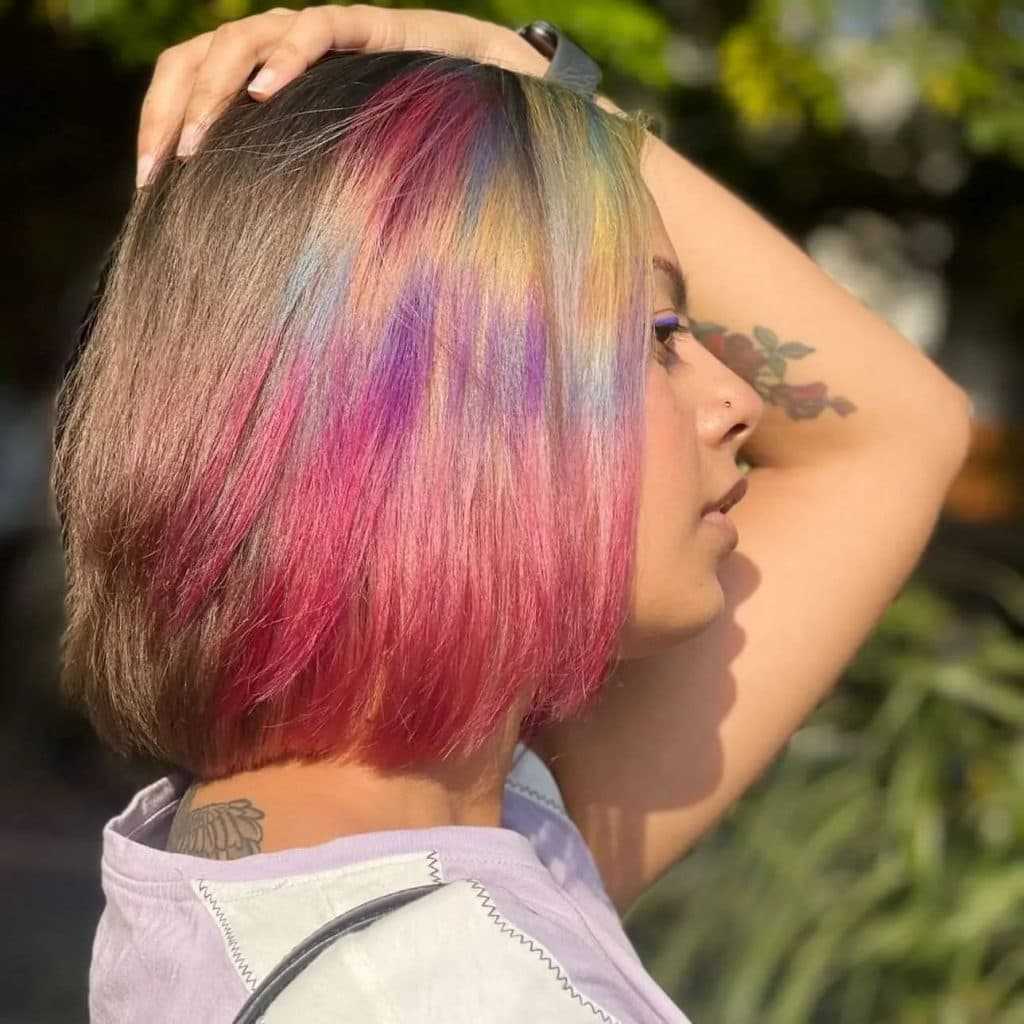 Новым трендом окрашивания коротких волос, который становится популярным в последние годы и особенно в 2024, являются цветные радужные челки. Обычно они потрясающе смотрятся на людях с короткими волосами, а также могут стать для вас отличным способом показать миру, на что похожа ваша личность.