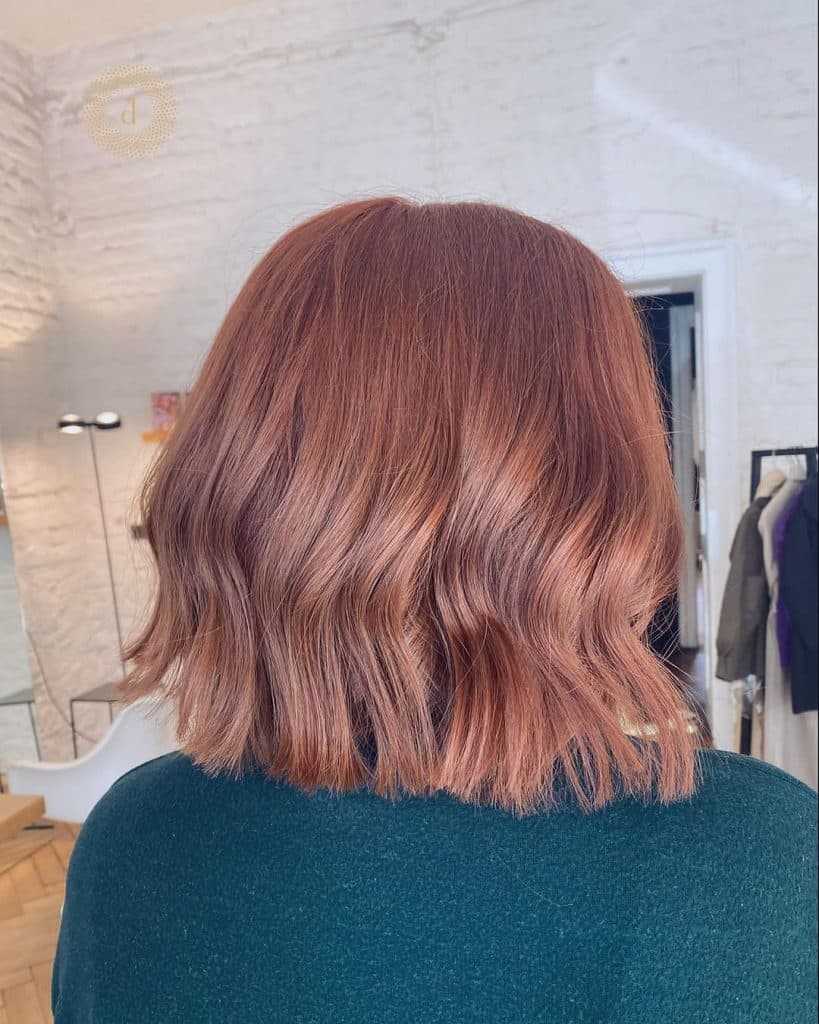 Ржаво-коричневый — красивая альтернатива классическому блонду, и он отлично смотрится на людях с любым оттенком кожи. Он никогда не будет выглядеть старым или устаревшим, что делает этот цвет волос отличным вариантом для коротких и средних волос на 2024 год.