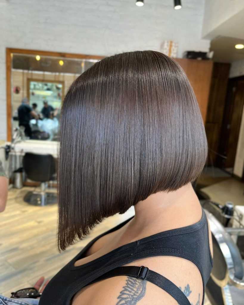 Асимметричный боб отличается тем, что его длина и форма несимметричны. Одна сторона может быть короче или иметь другую форму, создавая яркий контраст и эффектное впечатление. Эта стрижка подходит для тех, кто ищет нечто необычное и готов экспериментировать со своим образом.