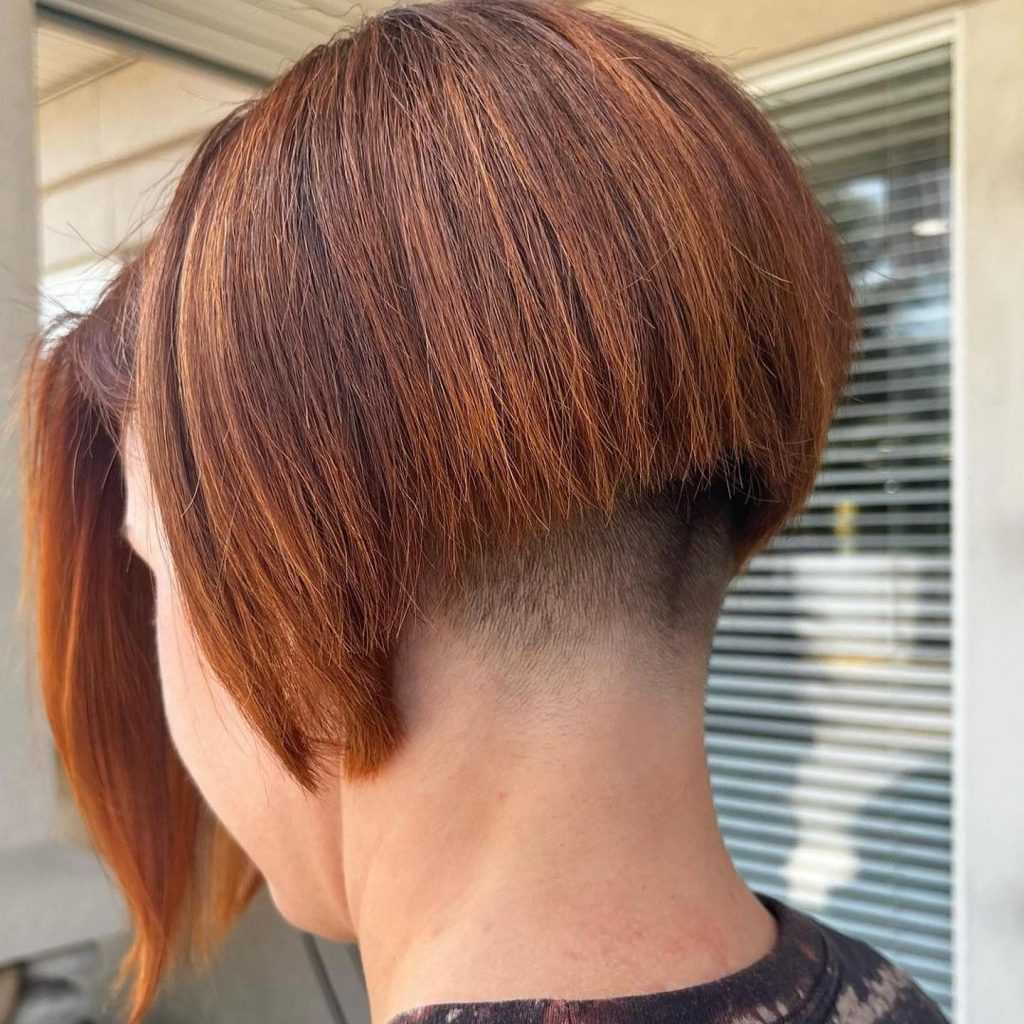 Иногда выбритым делают только затылок, и когда волосы распущены, то ничего не заметно, но если собрать их в хвост или пучок, то будет видна оригинальность укладки.