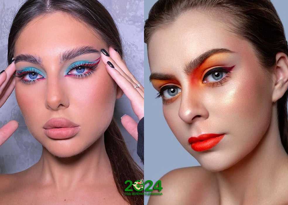 Если повседневная мода больше тяготеет к нейтральным оттенкам и естественности, то новогодним трендом 2024 года однозначно будет макияж в ярких сочных неоновых оттенках, как на фото.