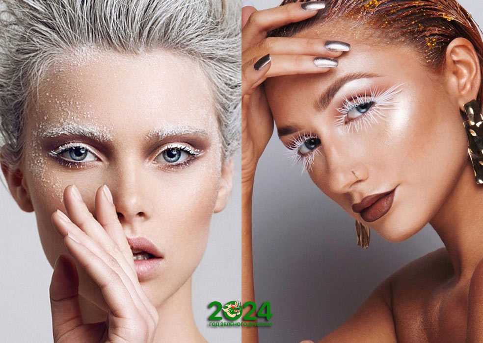 Также актуальным на Новый Год будет «морозный» зимний макияж с необычными белыми ресничками.