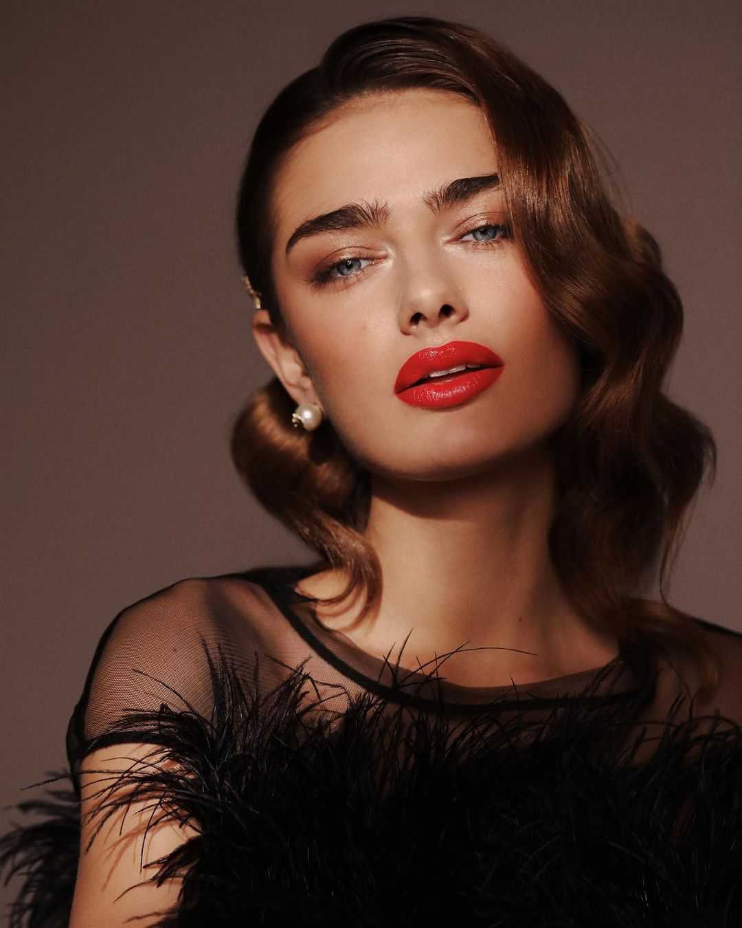 Если хотите подчеркнуть черты лица, но предпочитаете лаконичный макияж, обратитесь к современной классике: например, мейкапу с акцентом на алые матовые губы. На лицо нанесите только тон и хайлайтер, если хотите создать эффект стеклянной кожи, и немного прокрасьте ресницы тушью.