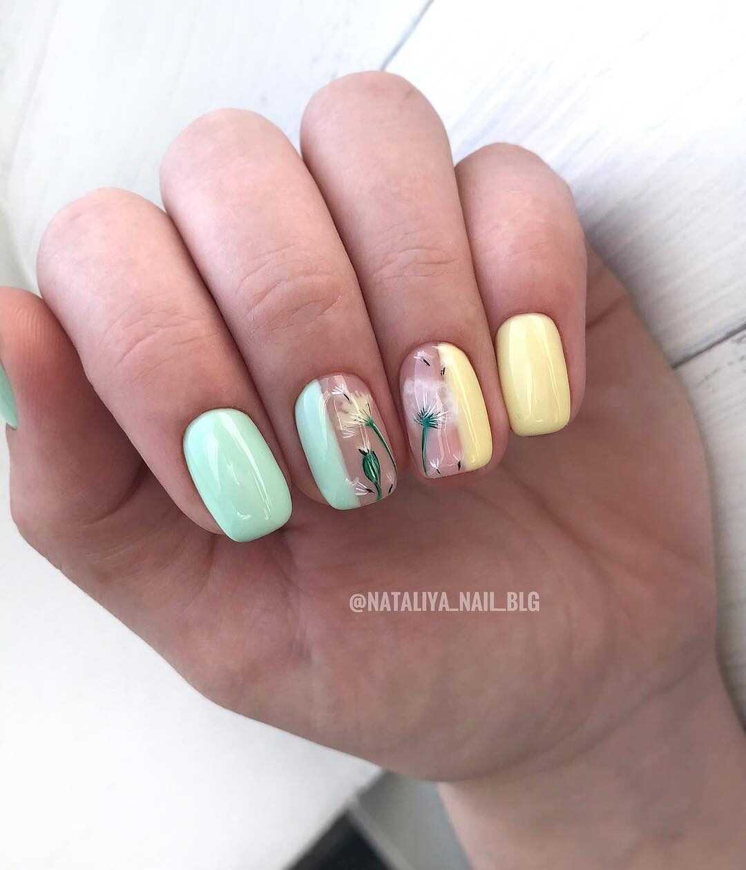 Пастельная палитра лаков — это не скучные однообразные тона, она также может быть многогранной и разноцветной. Если говорить про летний маникюр 2024 года, но тут чаще всего мелькают приглушенные голубые, желтые, лиловые, розовые, а также зеленые оттенки.
