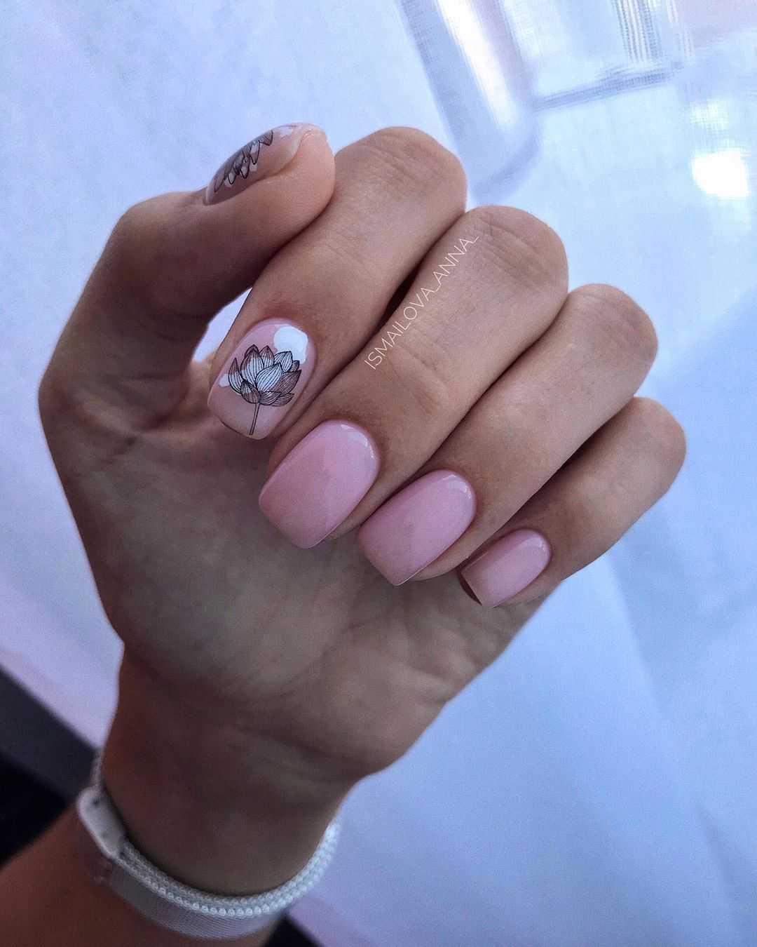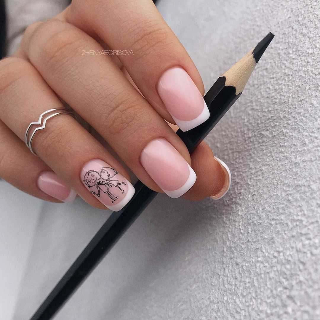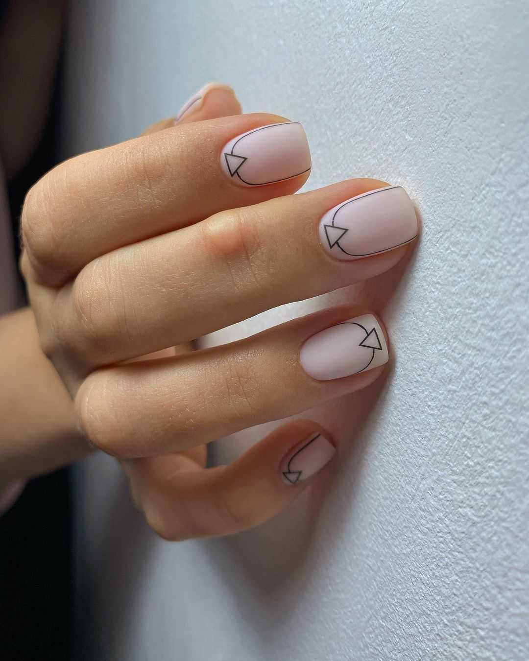 При этом важно учитывать уместность и соразмерность того или иного декора относительно небольшому размеру короткого ногтя. Среди удачных вариантов дизайна нежного короткого маникюра можно выделить следующие: нюдовый оттенок базового глянцевого или матового покрытия в изысканном сочетании с минималистичным монохромным рисунком на одном или нескольких ногтях; геометрические узоры и рисунки контрастной гель-краской на нежной основе гель-лака; оригинальная идея под названием «негативное пространство»; мраморный маникюр, «кошачий глаз» и многие другие креативные варианты