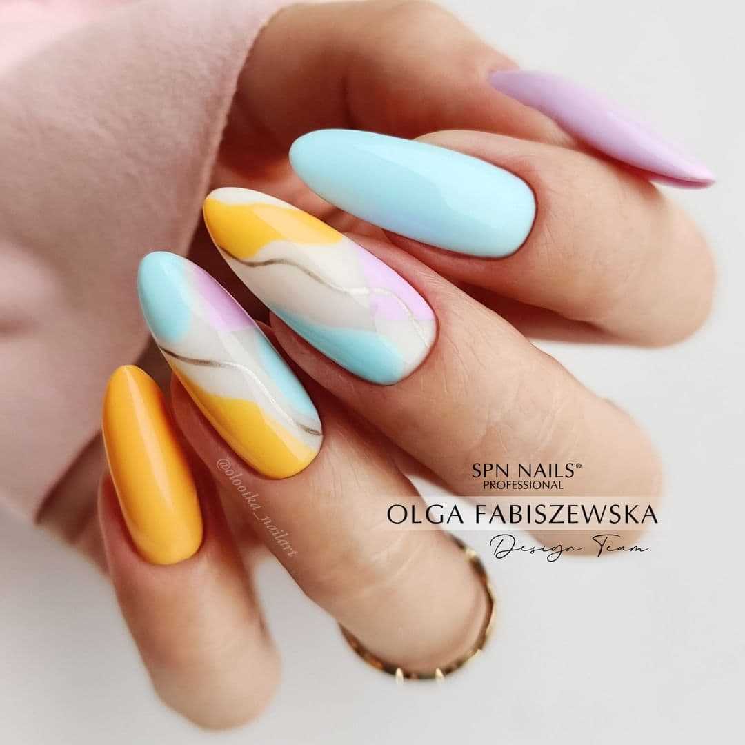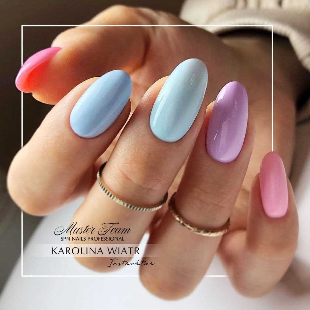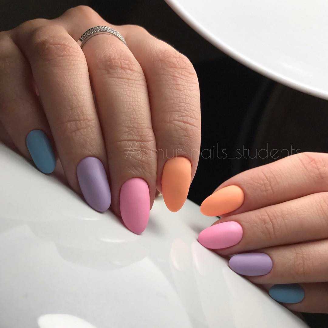 Маникюр разноцветный в пастельных тонах