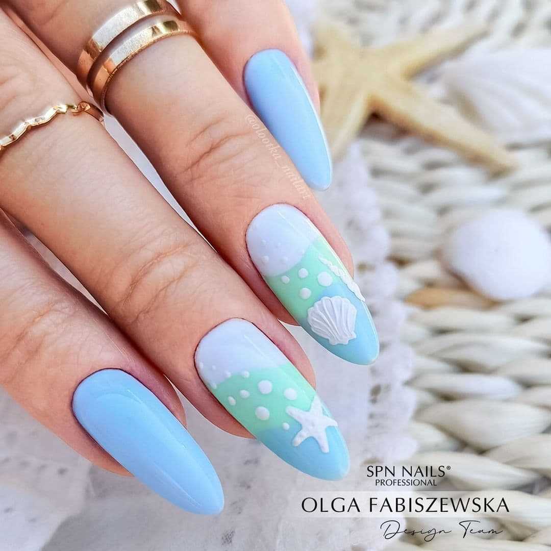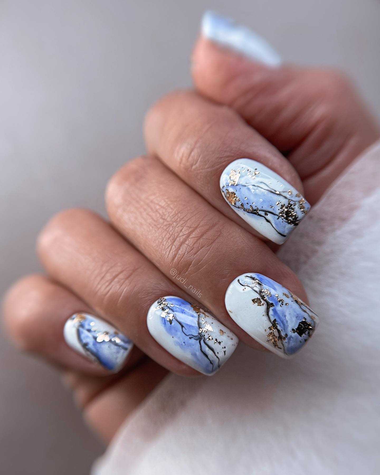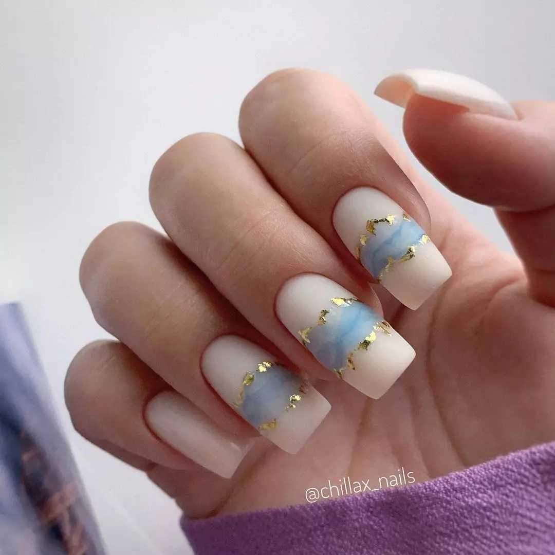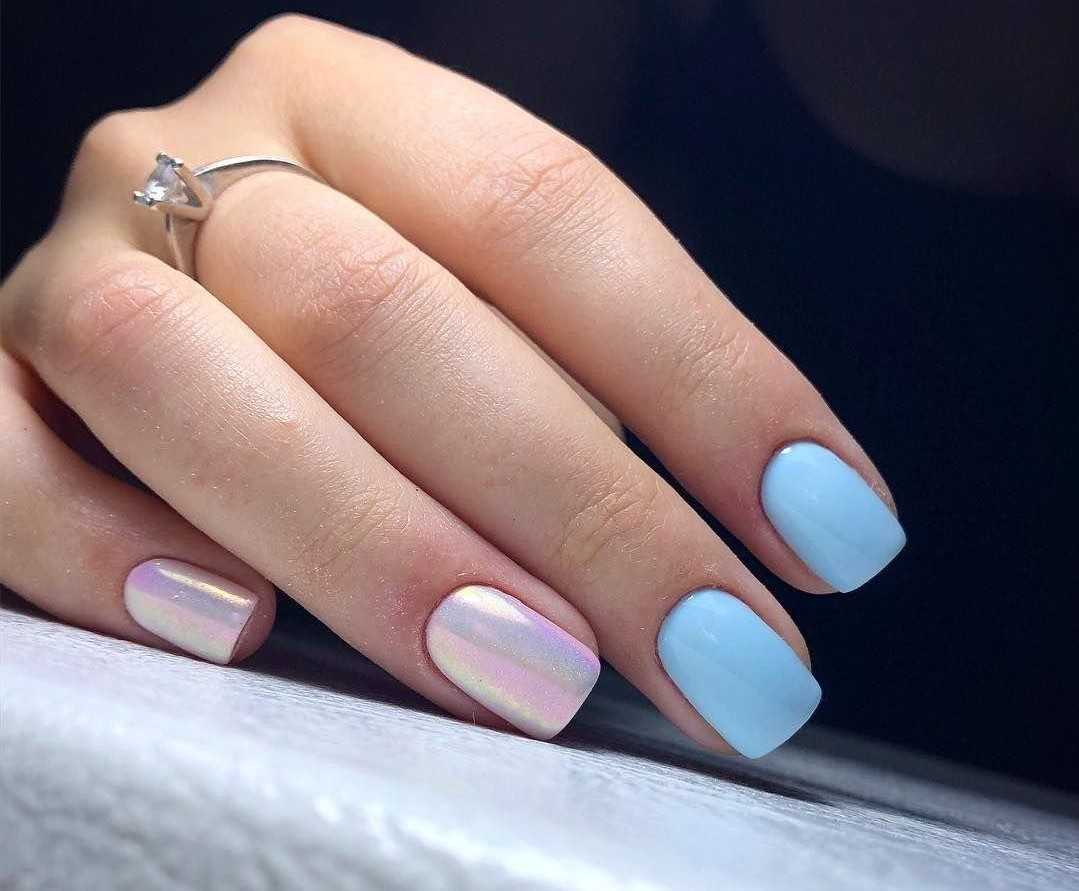 Голубой оттенок в последние годы используется в маникюре очень часто. Во-первых, с ним можно сделать трендовый дизайн в виде облаков или волн. Во-вторых, благодаря своей красоте и лаконичности голубой всегда будет смотреться уместно, поэтому он подходит большинству дизайнов. И, конечно, этот оттенок как нельзя лучше будет смотреться с весенним или летним вариантом дизайна нежного маникюра.