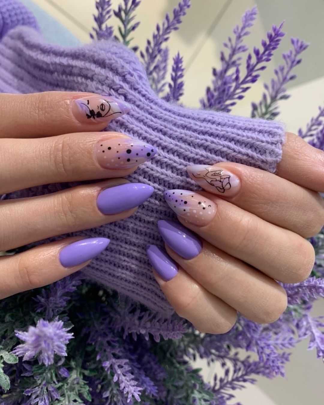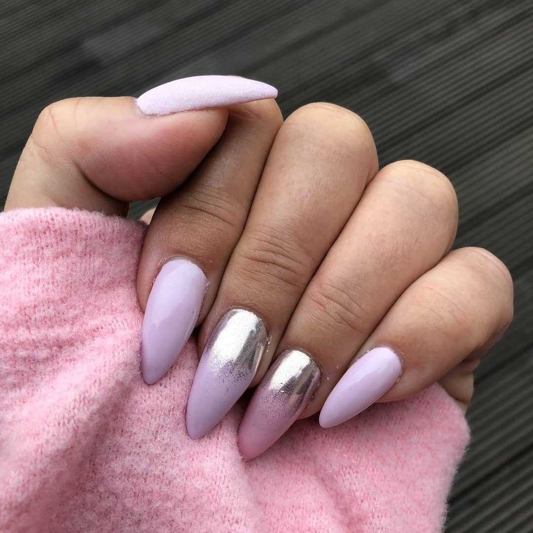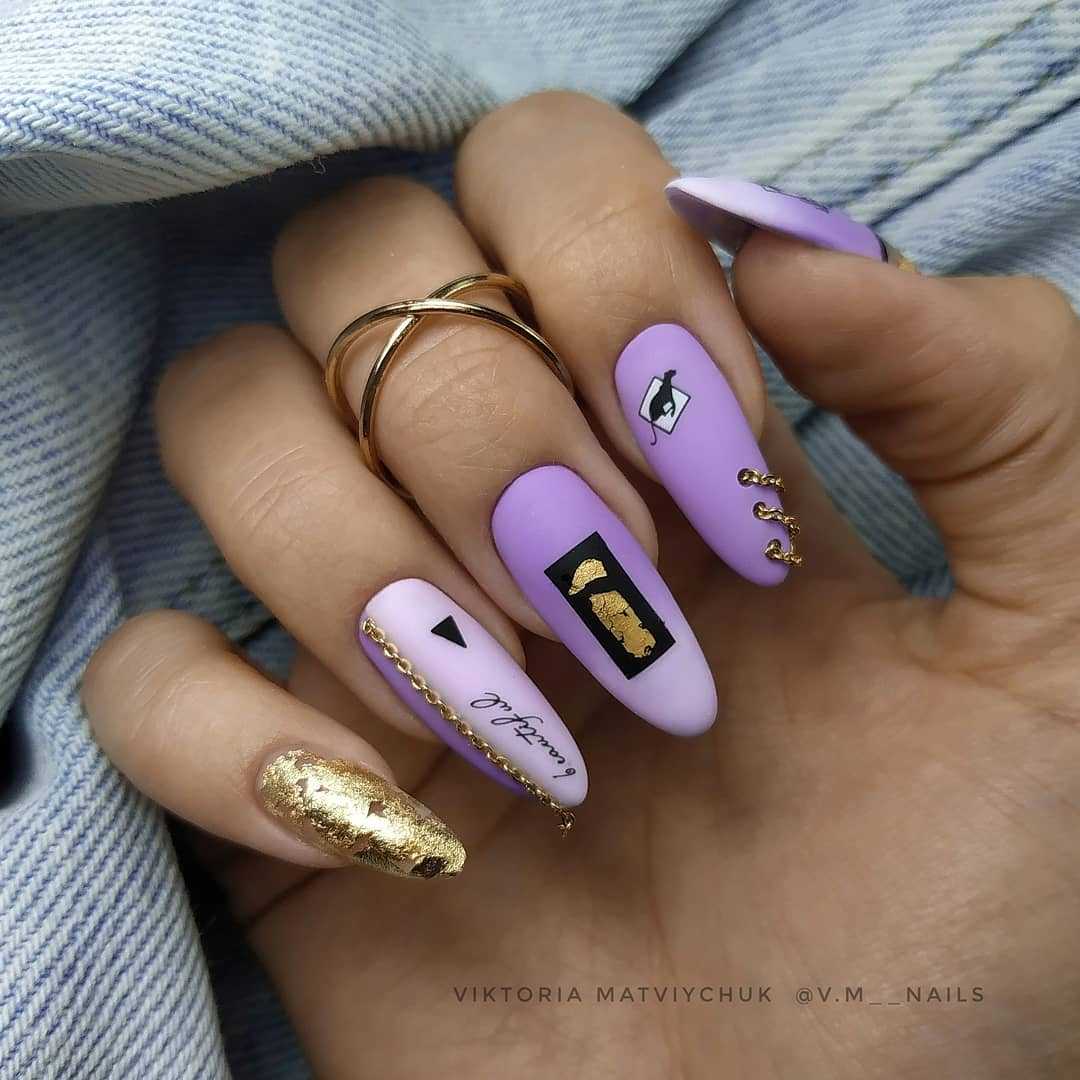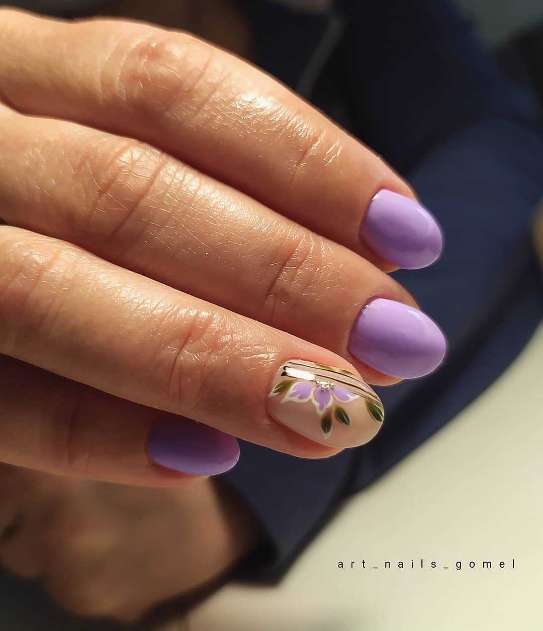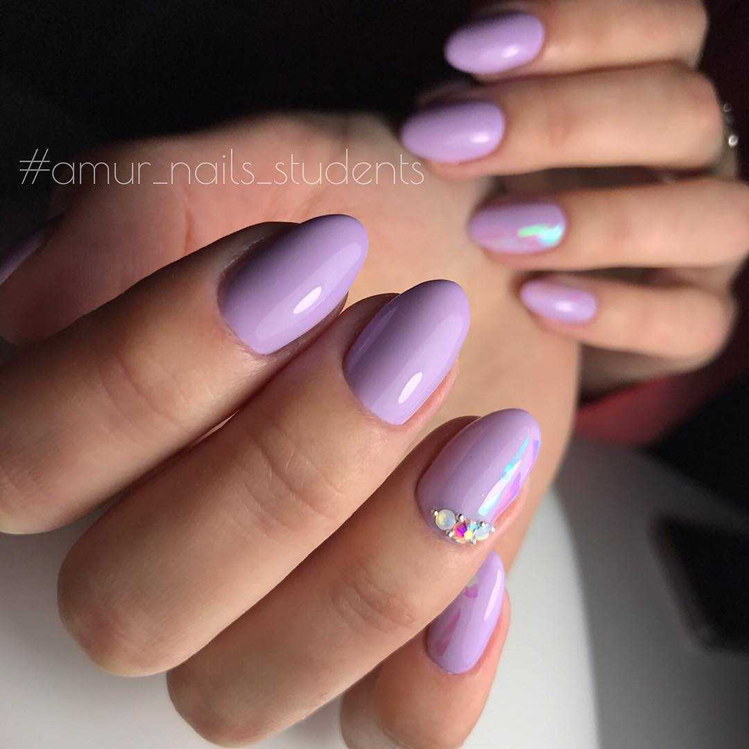 Сама по себе лаванда — символ спокойствия, умиротворения, крепкого сна. Не зря это растение способно благоприятно воздействовать на нервную систему и дарить нам приятную безмятежность. И на подсознательном уровне один только оттенок этого цветка уже воспринимается нами как что-то хорошее. Поэтому лавандовый оттенок в маникюре — отличный вариант нежного дизайна ногтей. Фото классического и более яркого нейл-арта с этим цветом мы показываем ниже.