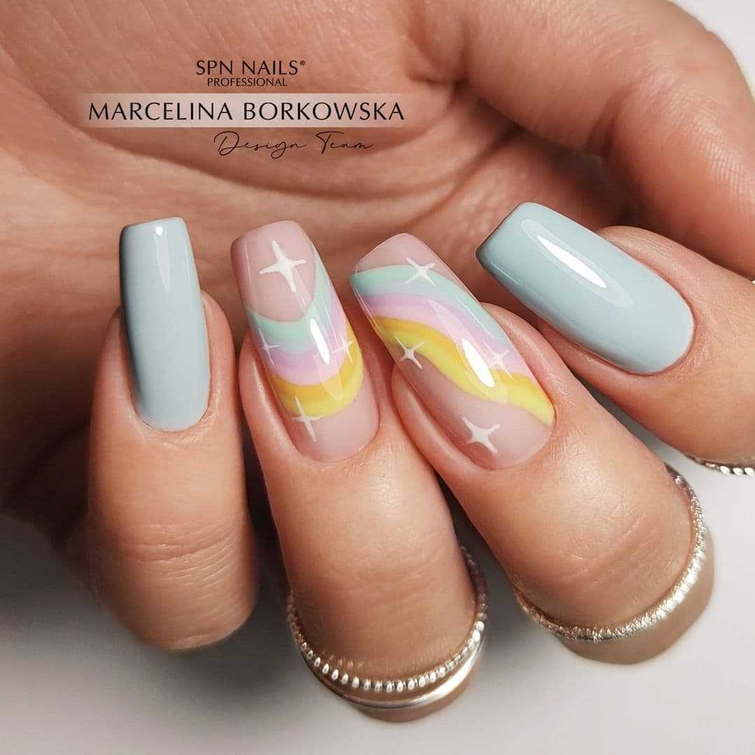 Украсьте свои ноготки одним из них или сделайте радужный маникюр. Выбрав последний вариант маникюра, верным решением будет отказаться от яркого дизайна. Великолепная и многогранная палитра разноцветных лаков в светлой гамме отлично подойдет для любой длины и формы ногтей.