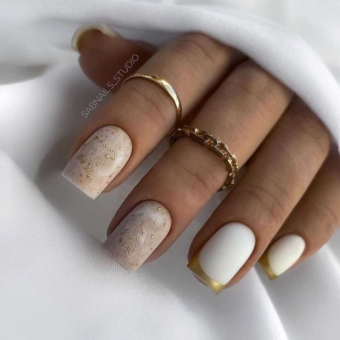 Матовое покрытие будет в тренде и в этом сезоне. Приятная бархатная текстура делает декор еще более нежным. Матовый нюд с блестками или звездочками создаст загадочный образ. Нежное омбре сделает ногти более заметными. А френч в сочетании с глянцевыми кончиками новое идеальное решение.