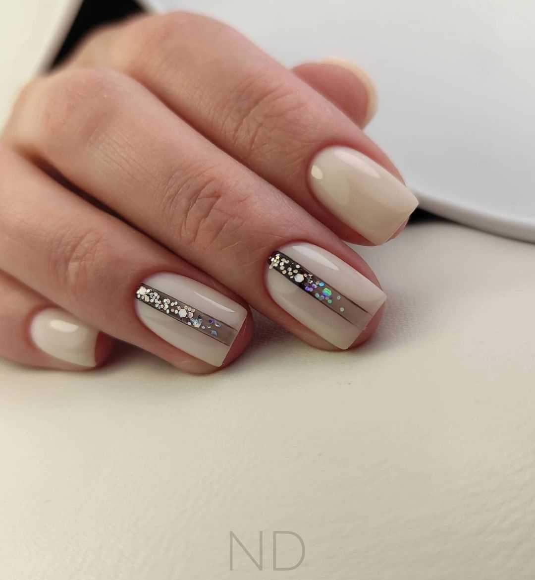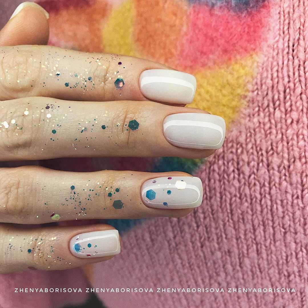 Короткие ногти: шикарный дизайн с глиттером
