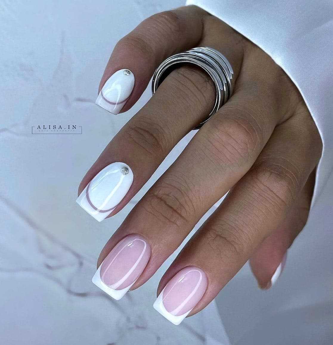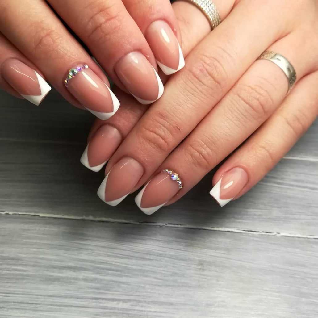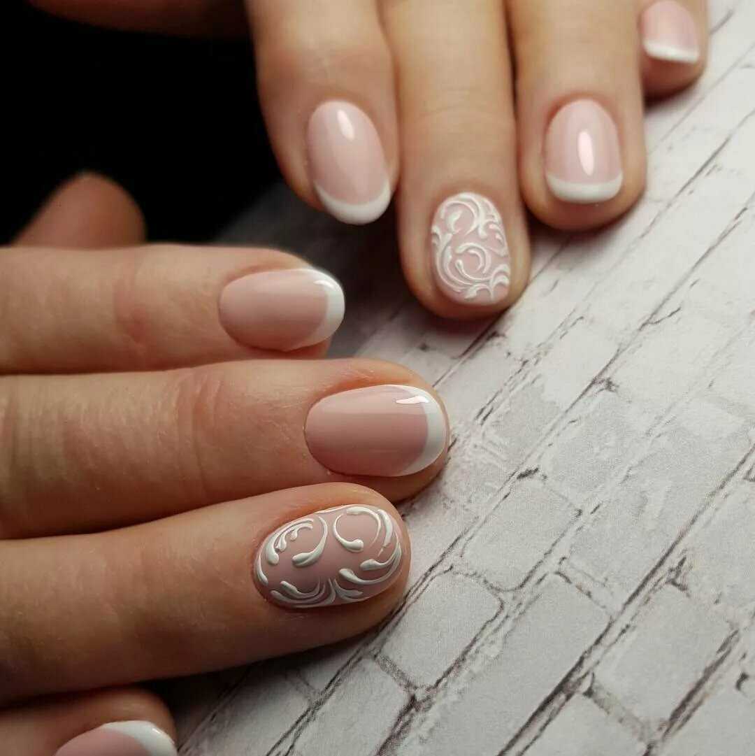 - Создаем деликатные дизайны. Нежный маникюр также отличается использованием деликатных дизайнов, которые добавляют особую изысканность и стильность. Одним из популярных вариантов является французский маникюр с пастельными оттенками, где белый кончик ногтя сочетается с нежным основным цветом. Также можно использовать легкие геометрические узоры, цветочные мотивы, нежные стрелки или нежные блестки.