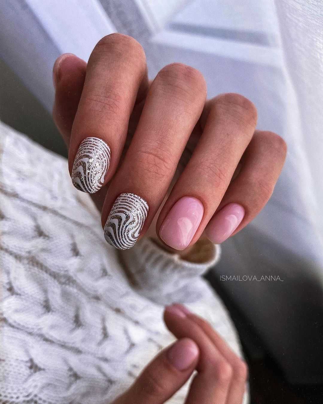 Фото: короткий маникюр с серебром и золотом