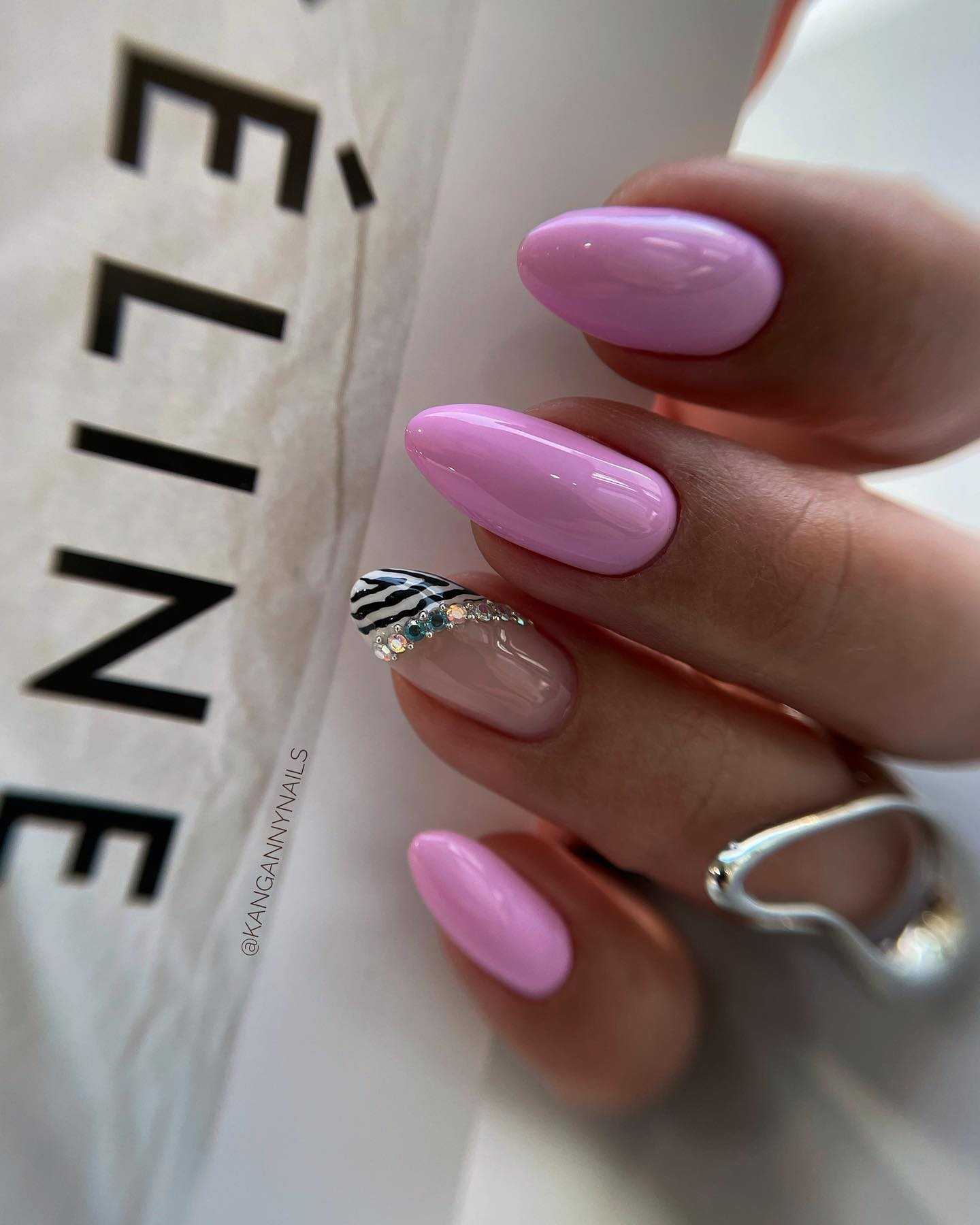 Под его нанесение можно выделить один или два ногтя, а остальные покрыть другим цветом и добавить элементы декора. В этом варианте маникюр будет смотреться веселее и непринужденно.