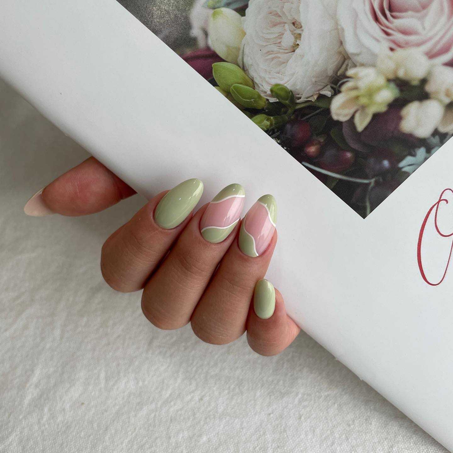 Зеленая пастель обычно очень мягкая салатовая, её особенность в отсутствии любой яркости. Интересный эффект создает при сочетании с розовыми пудровыми оттенками. А вот дизайна практически не терпит, лучше всего оставлять однотонной.