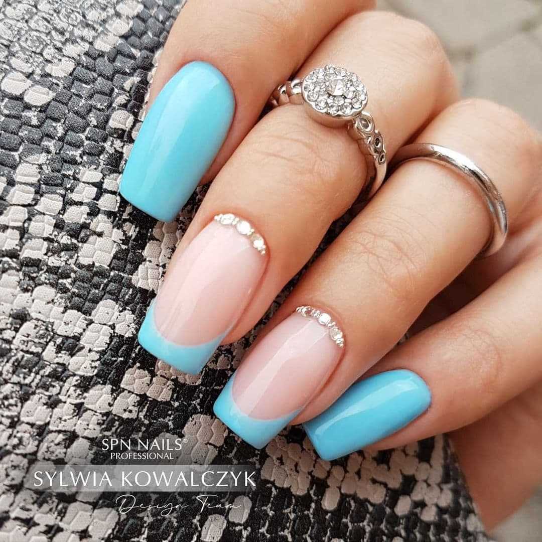 Небесно-голубой — один из самых притягательных. Отличается необычайной легкостью и воздушностью, ассоциируясь со свободой, лазурным небом, летом. Декор от градиента до объемных камушков.
