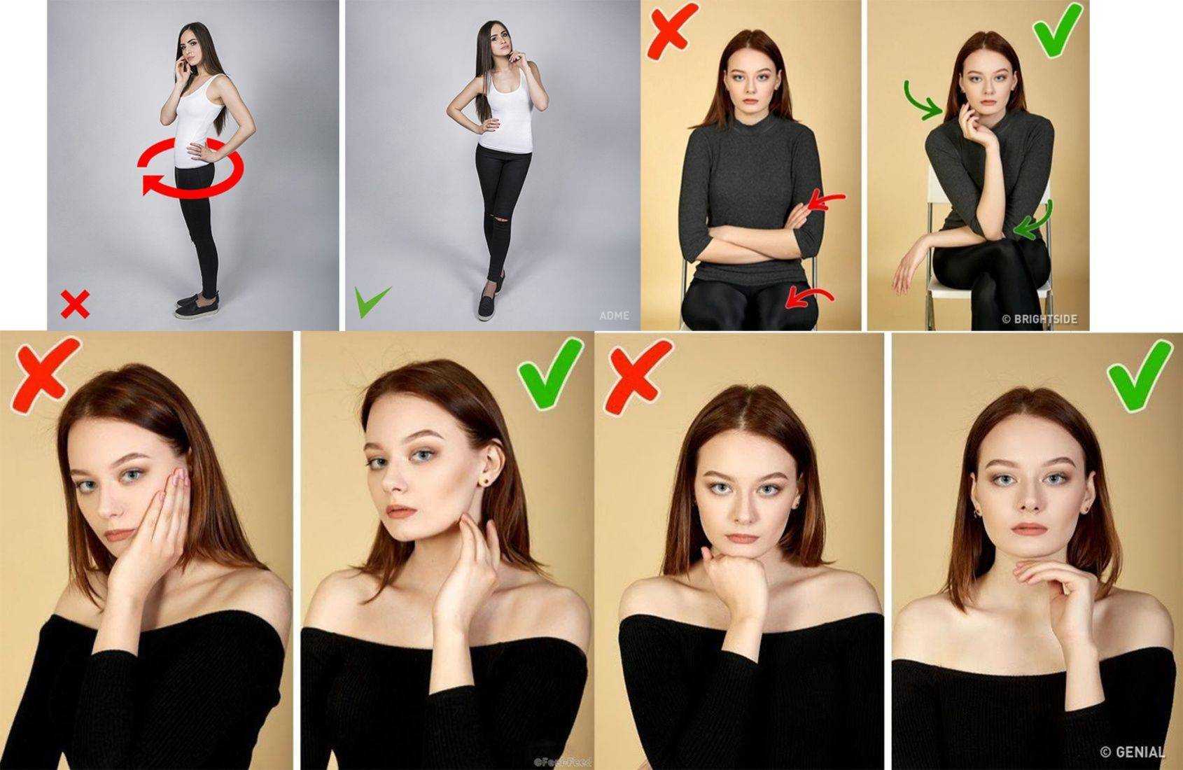 Парням. Молодые люди больше всего боятся показаться женственными и чрезмерно худыми. Если вы не обладаете желаемой мышечной массой, постарайтесь отказаться от фотографий в майках с коротким рукавом – лонгслив, кардиган, свитер станут более подходящими решениями. Использовать «классические» приемы вроде скрещенных на груди рук для «увеличения» бицепса или страдать от «синдрома широкой спины» не рекомендуется. Положение тела должно быть естественным, не должно улавливаться искусственности, ощущения вашей зажатости.