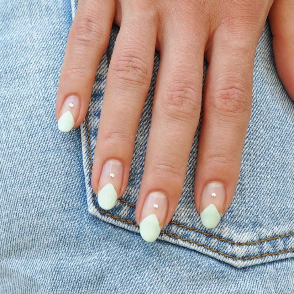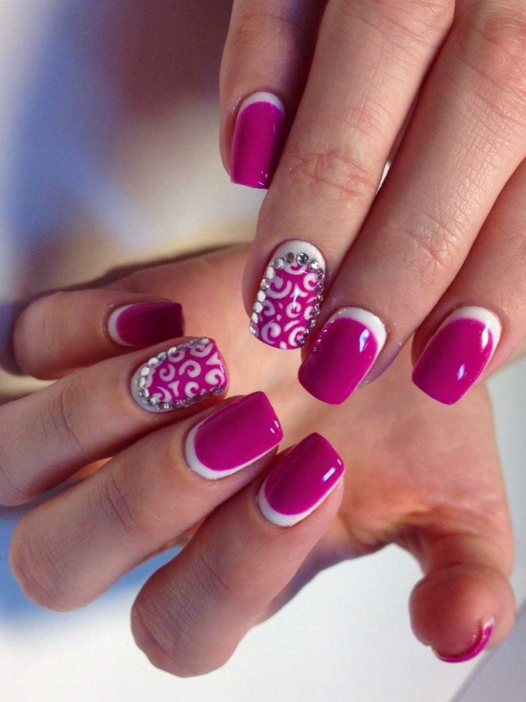 Стразы — классный способ, чтобы скрыть отросший ноготь. Во-первых, они подходят практически к любому цвету лака. А во-вторых, они сочетаются с любим нарядом. Приклеить стразы можно или с помощью прозрачного лака, или клеем для маникюра. В любом случае они будут держаться до самого снятия покрытия. Единственный минус этого метода — иногда крупные стразы могут мешать или царапаться.