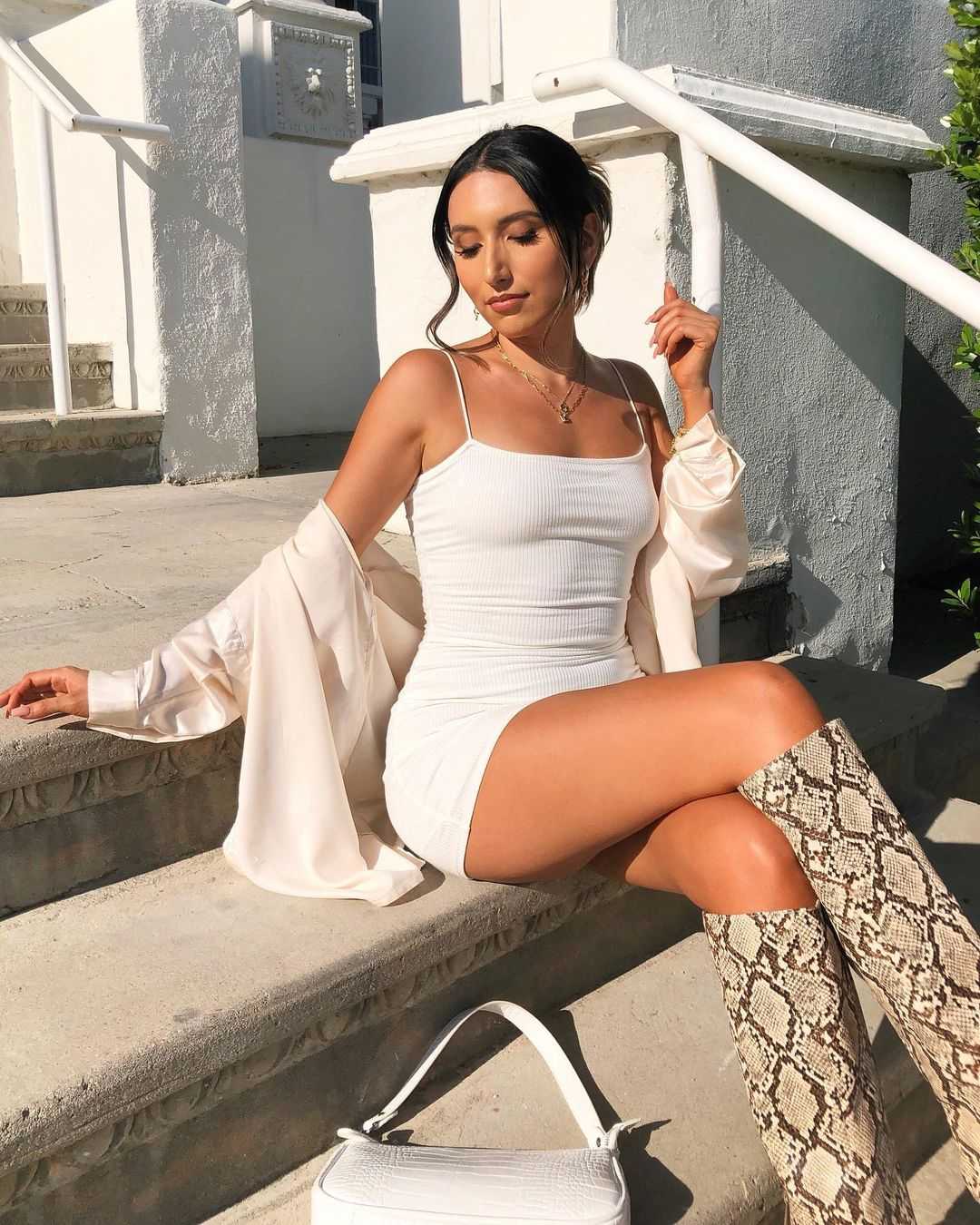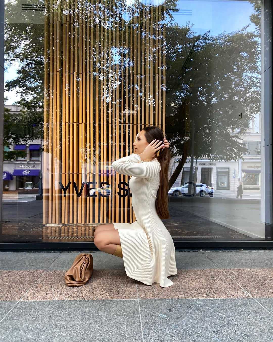 Платье-лапша в белом цвете обладает какой-то особой магией. Оно идеально подходит для зимы и идеально смотрится с белыми гетрами.