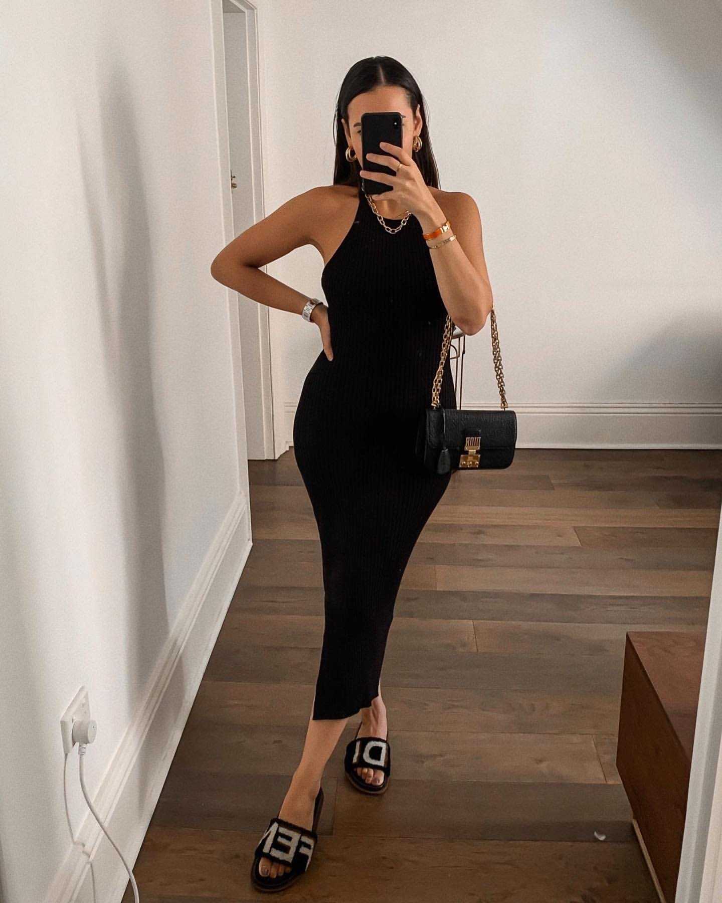 Черное платье водолазка лапша. Идеально для создания лаконичного и простого образа. Используем минимум аксессуаров, чтобы не перегрузить лук лишними деталями