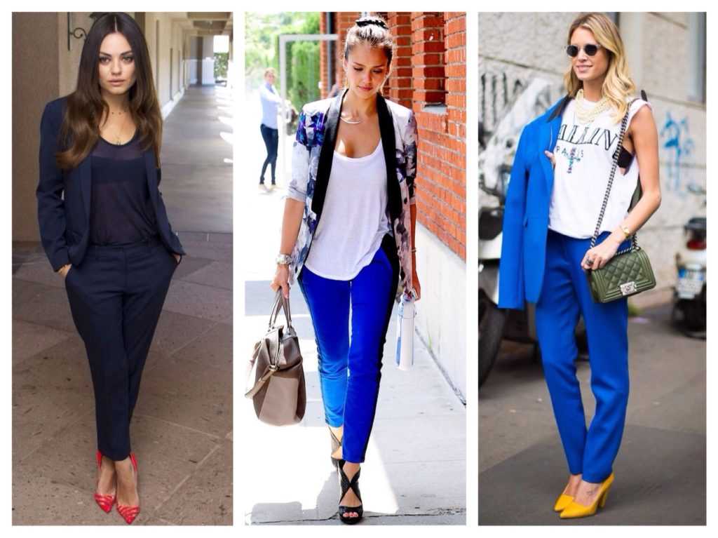 Многие считают, что одежду насыщенных оттенков сложно сочетать с другими частями гардероба, за исключением классических цветов. Но на самом деле все гораздо проще. Можно создать яркие и сочные комбинации, не выглядя при этом слишком пестро, напыщенно и вульгарно. Вы удивитесь насколько много вариантов того, как и с чем сочетаются синие брюки. Это та вещь, которая может играть главную роль в комплекте или удачно дополнять другие элементы. В любом случае с их помощью вы будете выглядеть стильно, элегантно и не останетесь без внимания окружающих.