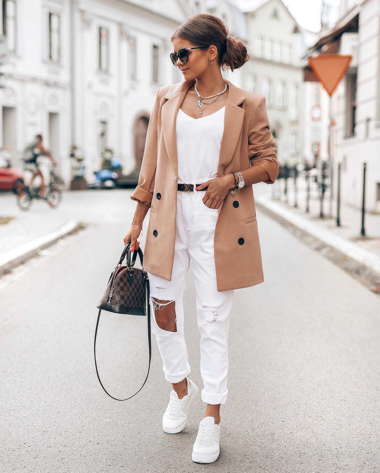 Total White. Это самый популярный тренд этого сезона. Для тех, кто любит простоту и минимализм, — это самое удачное и эстетичное сочетание. Такой лук добавит также женственности и элегантности вашему образу.
