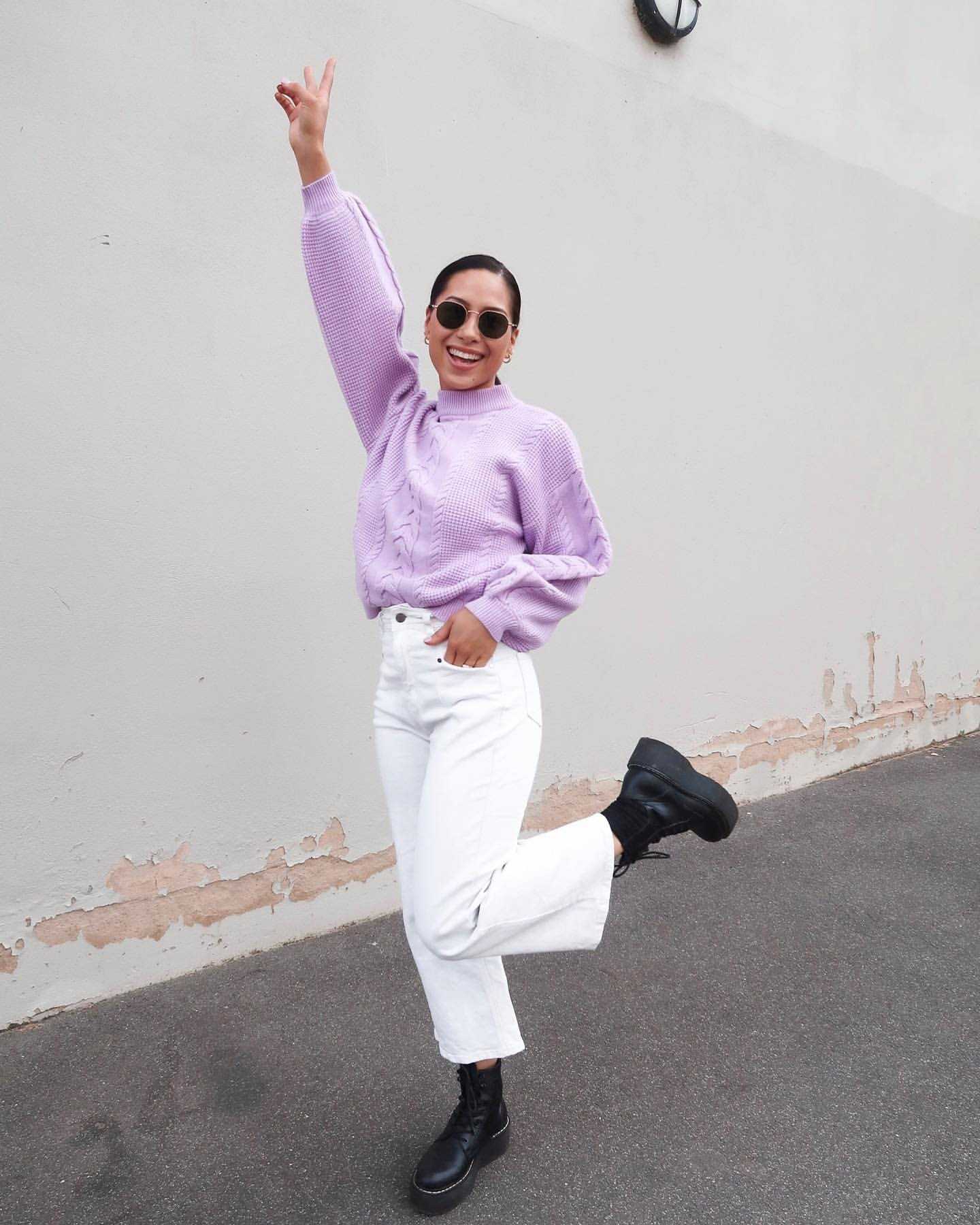 Пастельный верх+белые джинсы. Один из самых элегантных и изысканных способов сочетания этого предмета гардероба. Как известно, пастельные оттенки получаются за счет разбавления основного цвета белым, так что такой вариант — один из самых выигрышных.