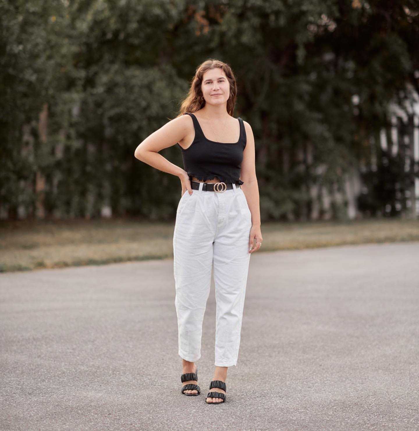 Джинсы Mom любят простоту, поэтому отлично смотрятся в дуэте с короткими топами или блузками и футболками. Кроме того, добавьте модную спортивную обувь или классические кроссовки для создания молодежного образа девяностых.