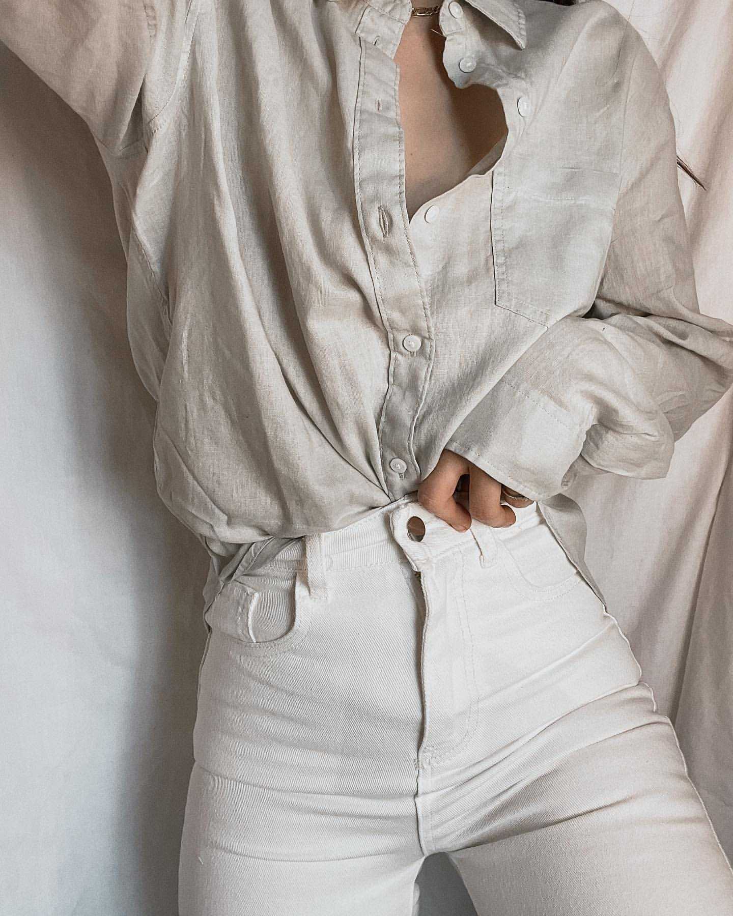 dlrmkВыбирая такой вариант, не забывайте и о фактурах. Верх и низ могут быть белого цвета, но фактуру тканей смело можно выбирать разной. Джинс можно смело сочетать как с легкими фактурами, так и более с грубыми. Не забудьте про аксессуары, которые дополнят ваш лук.