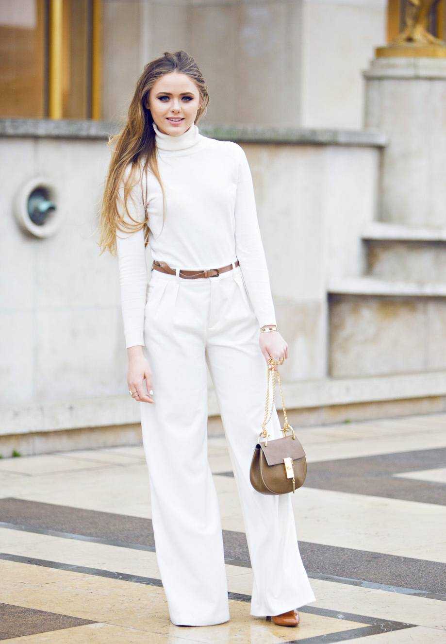 Дизайнеры увлеклись тотал-луками и предлагают полностью белые наряды не только для весенних и летних, но и для зимних образов. Если вы не готовы к таким экспериментам, то остановите свой выбор на темно-синем комплекте.