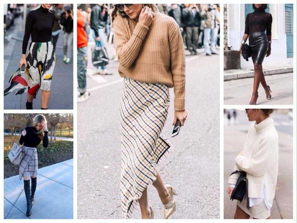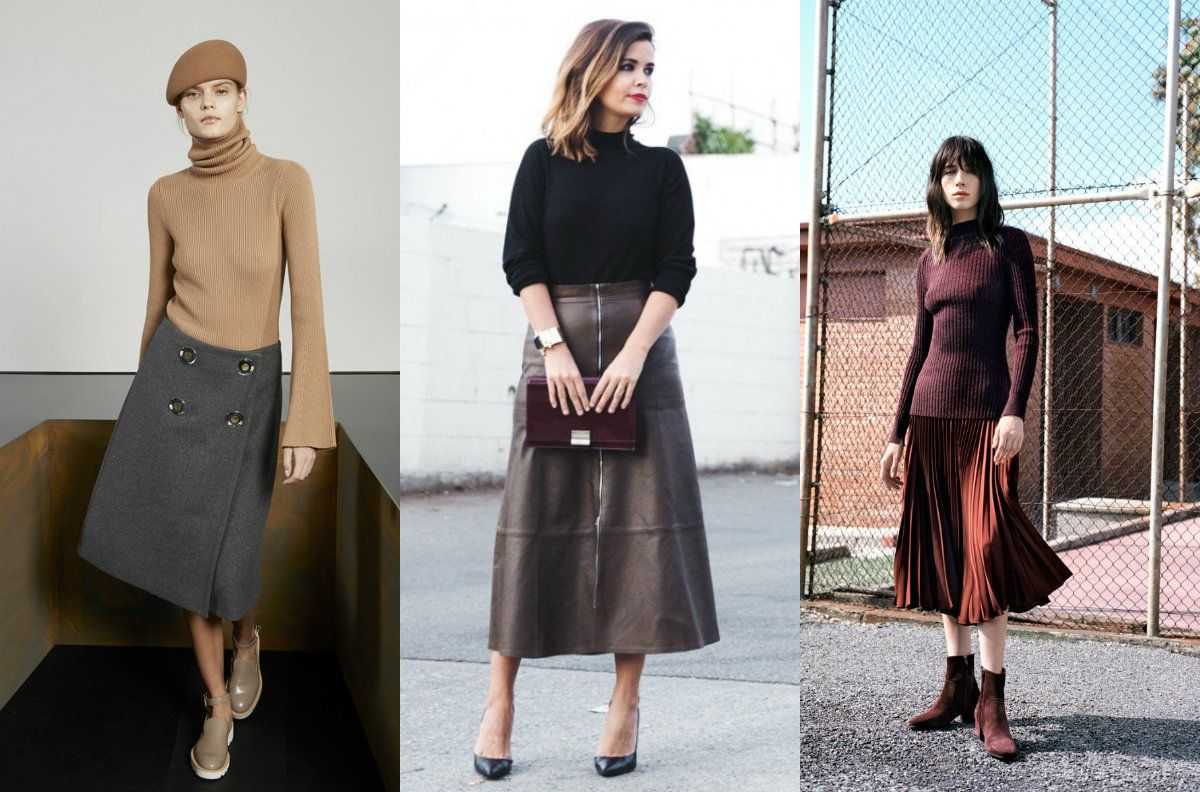 Юбки различных моделей и расцветок будут отлично смотреться с водолазкой.