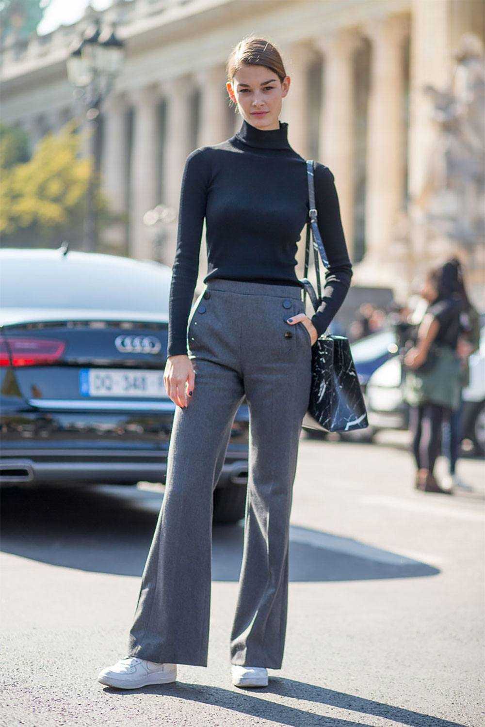 Говоря о водолазке, нельзя не отметить образы в стиле апре- и спорт-шик. Подбирать треники нужно в тон водолазке.