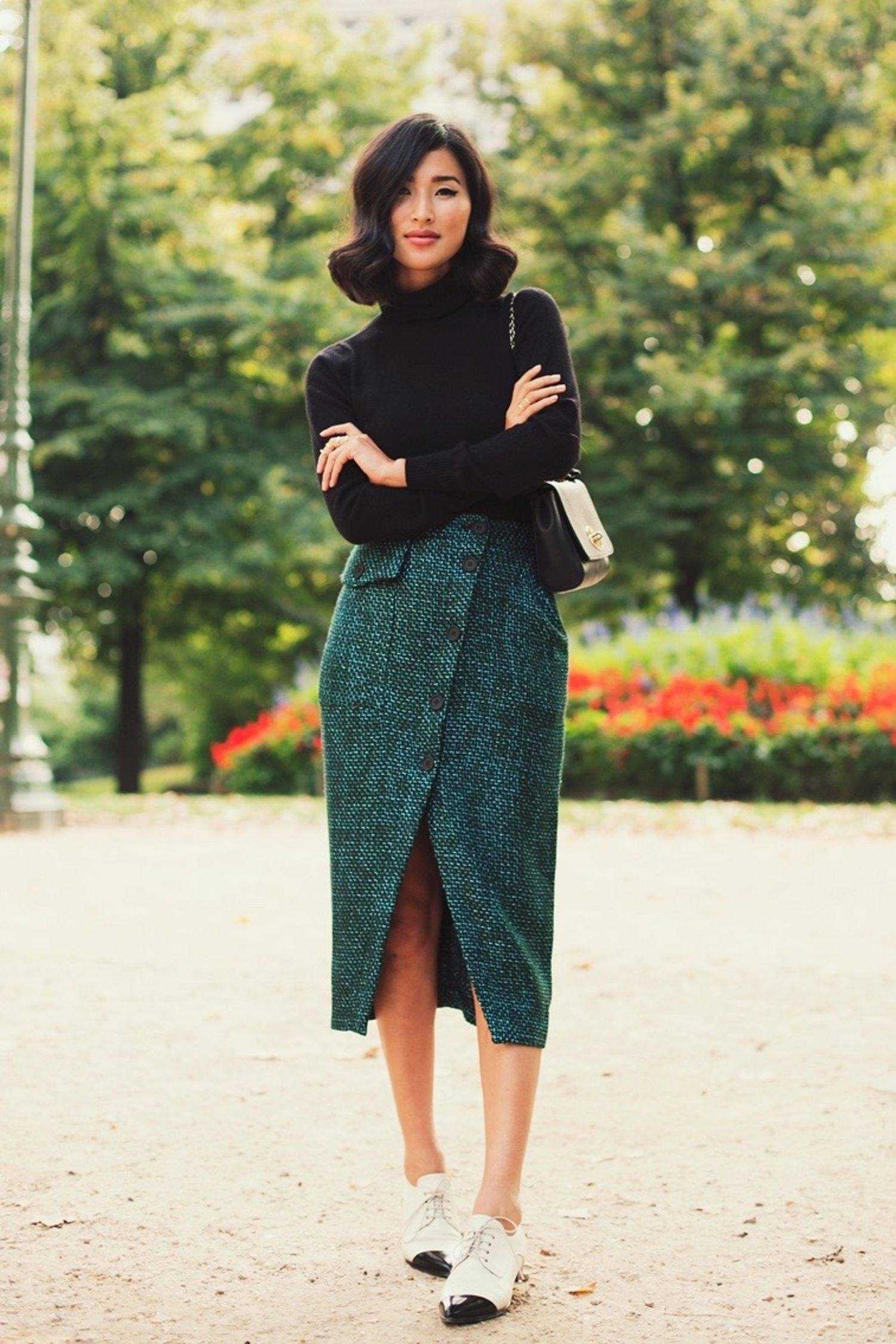 Черная водолазка просто не может смотреться плохо с юбкой карандаш. Вы можете выбирать практически любую расцветку – стильные эксперименты при таком сочетании только приветствуются.