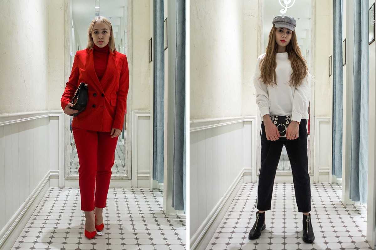Красные и синие водолазки с длинным рукавом и горлом пригодятся тогда, когда хочется разнообразить свой гардероб, но при этом остаться в рамках дресс-кода. Никаких декольте и открытых плеч. Можно продемонстрировать ноги, надев укороченную юбку и туфли на каблуке. Также такая яркая модель будет смотреться в комбинации с однотонным костюмом (черным, серым или белым). Модель с воротником здесь может оказаться неуместной, поэтому будьте аккуратнее.