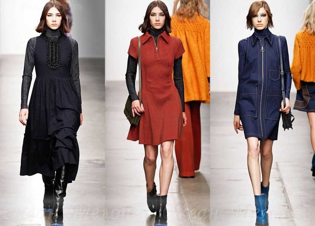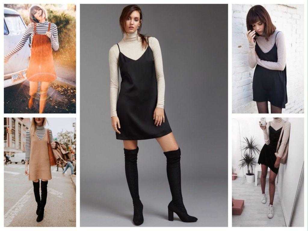 Сочетание платья и водолазки с первого взгляда вызывает недоумение, однако, многослойные образы активно продвигаются дизайнерами с мировым именем.