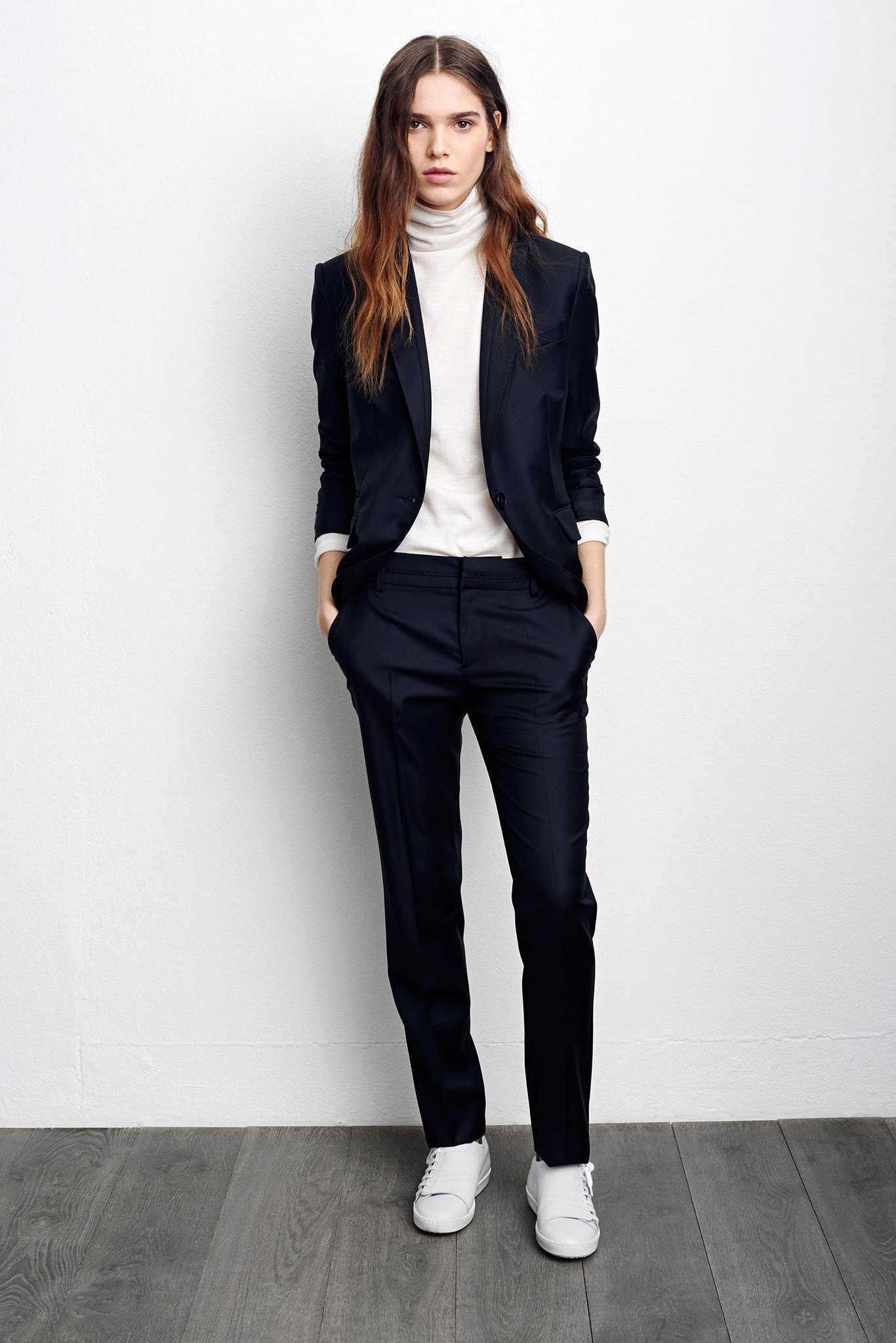 Обтягивающие тонкие водолазки хороши тем, что их легко можно заправить в брюки. В этом сочетании важен контраст между верхом и низом, благодаря чему фигура выглядит хрупко и женственно.