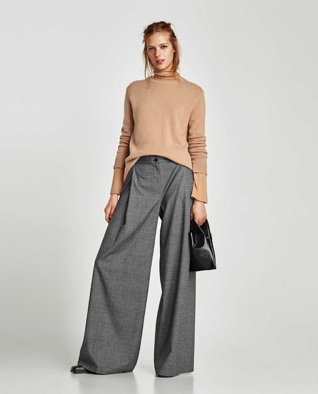 Свободный крой низа должен компенсироваться обтягивающим верхом. Беспроигрышный вариант – это водолазка в обтяг.