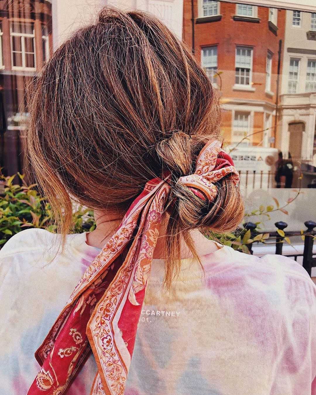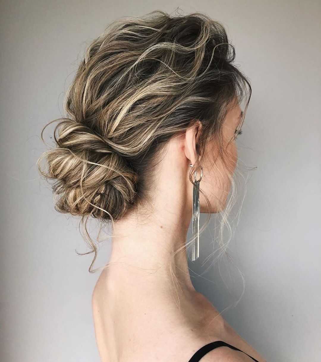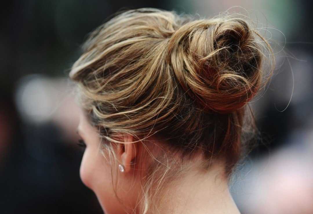 Неопрятный, небрежный пучок. Как ни странно, данный вариант прически успешно перешел из домашней обстановки на улицу и отлично вписался в кэжуал стиль. Выполняется он буквально за одну минуту.